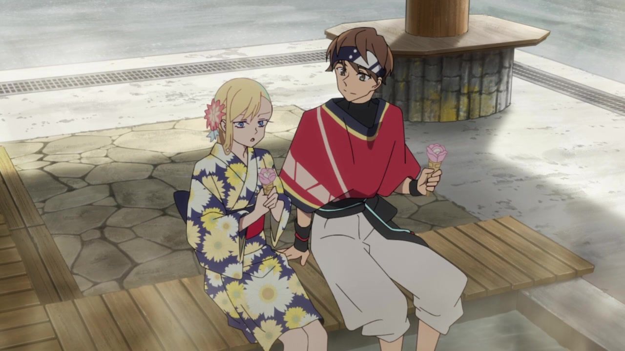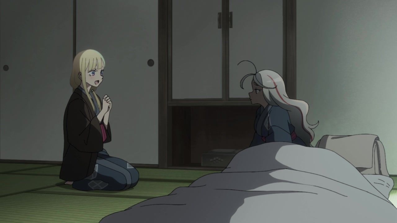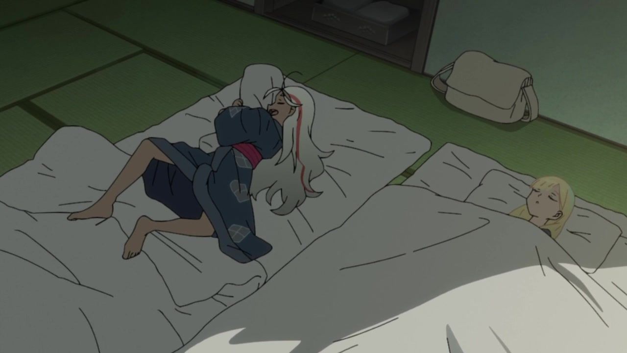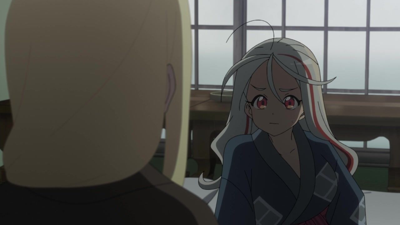 I honestly could not for the life of me tell you what the point of this entire hot spring arc was. Or the mafia arc for that matter, which lead into this. I guess this one added the dude to the party, but… who cares? What has he done? What is interesting or important about him? He's tagging along simply… because why not? Seems like a decent time. The squabbling ladies got back together after simply saying "I care about you too!" Which is I think the third interaction they've had with each other across two episodes, so there ain't no compelling character drama to be found. Hell, they even skipped over the bathing sequence, so the only fanservice was android blushing. In a kimono. Really making the most out of your killer robots with laser cannons here, guys.