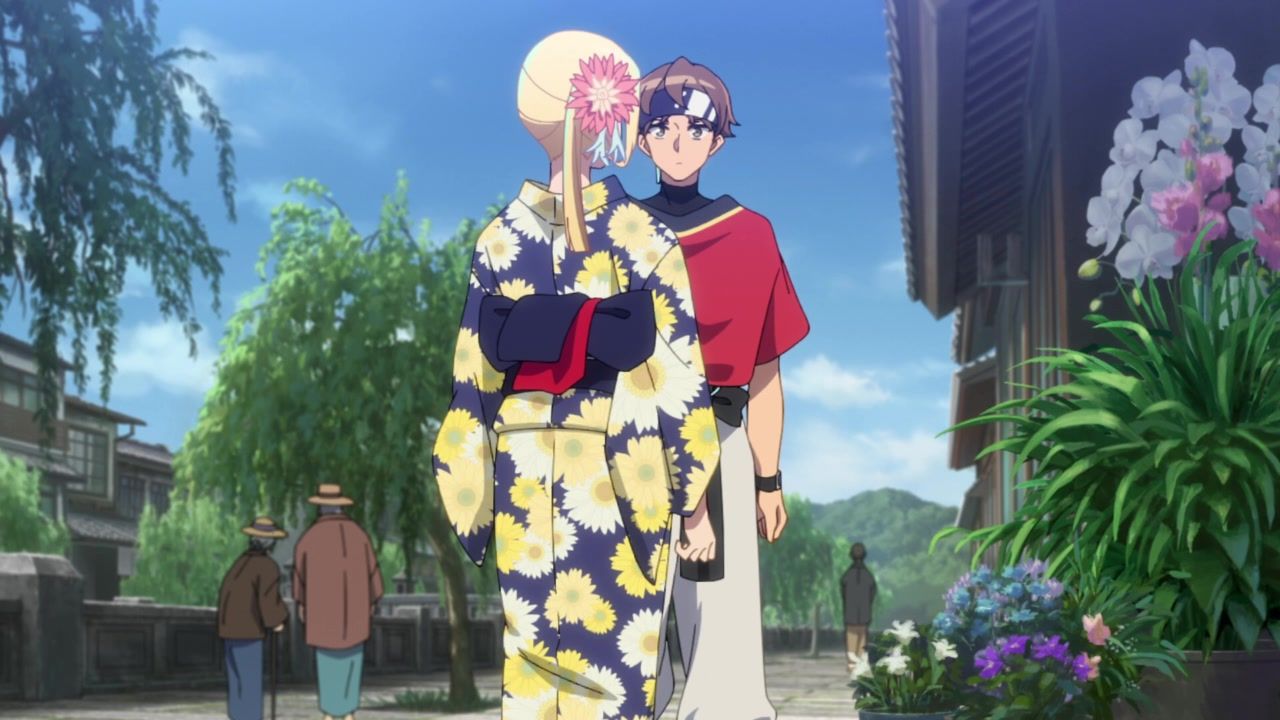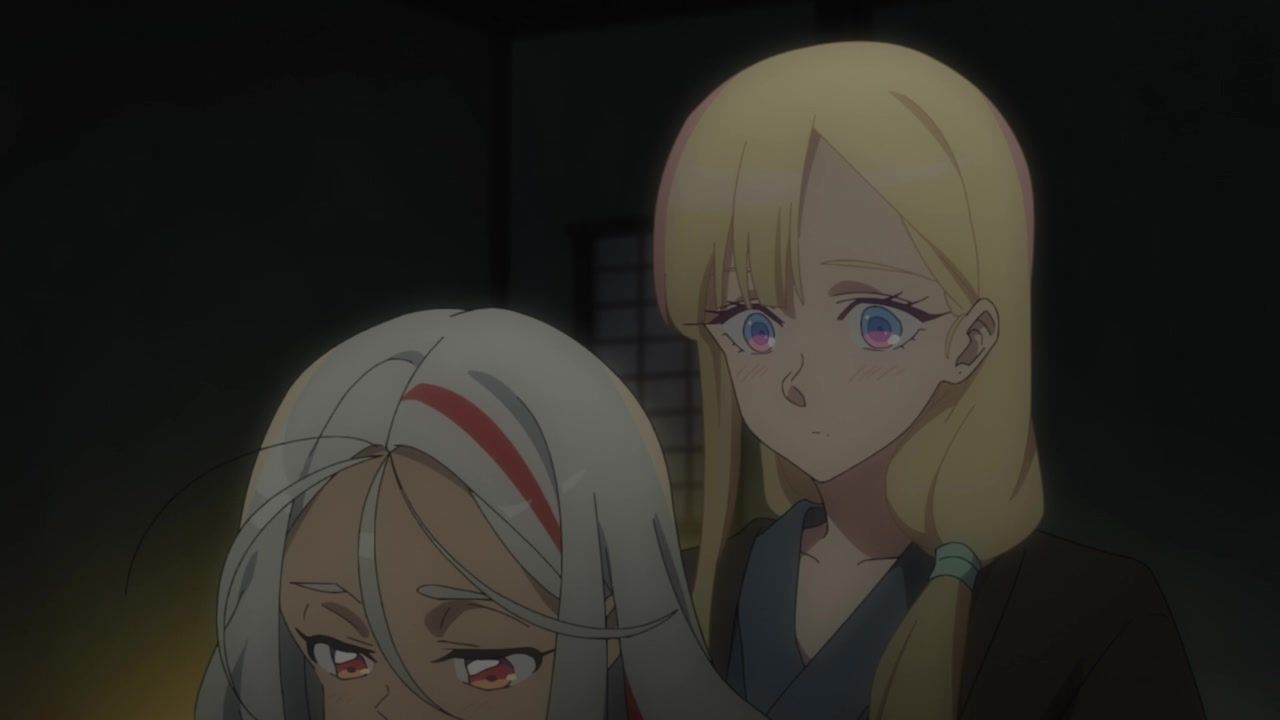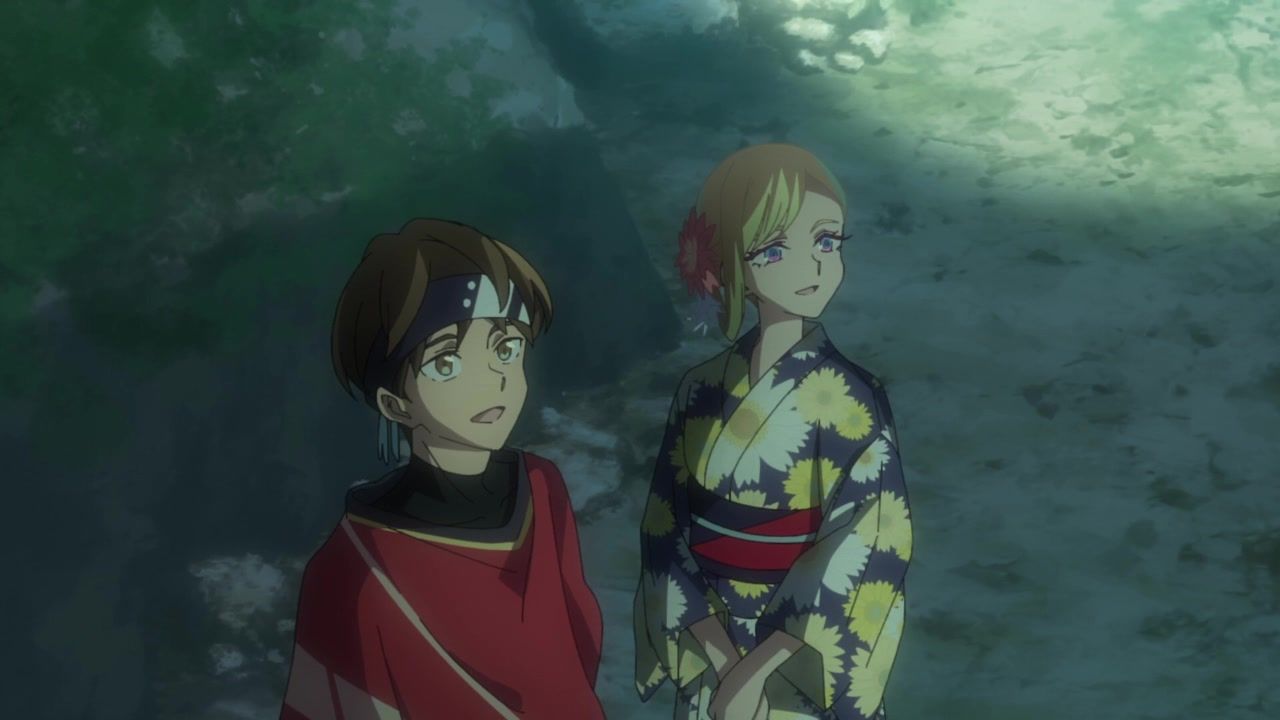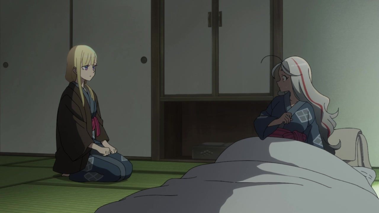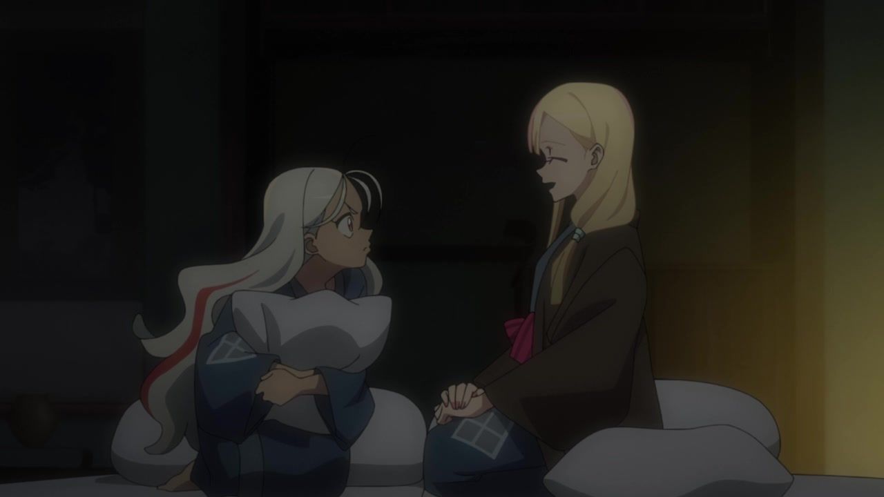 I honestly could not for the life of me tell you what the point of this entire hot spring arc was. Or the mafia arc for that matter, which lead into this. I guess this one added the dude to the party, but… who cares? What has he done? What is interesting or important about him? He's tagging along simply… because why not? Seems like a decent time. The squabbling ladies got back together after simply saying "I care about you too!" Which is I think the third interaction they've had with each other across two episodes, so there ain't no compelling character drama to be found. Hell, they even skipped over the bathing sequence, so the only fanservice was android blushing. In a kimono. Really making the most out of your killer robots with laser cannons here, guys.
