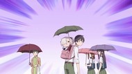 The second half of the episode was worse, perhaps not surprisingly, though it was split into two segments to try to keep things flowing, which it did not succeed at. It rained, and she had a birthday. The former was an excuse to announce that it indeed was raining and that umbrellas and cliches around them existed, and then to go through the motions. The latter just had all the characters recite their archetypes, including the boob girl, who's now literally just "boob girl." Comedy.