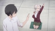Okay. New character. She's haughty and a meddler, but she's good at heart. …And? When she gets bitten, it pinches instead of slobbers. …Is that really it? She's also the childhood friend of the other girl. ………Really. We're doing half an episode on this? Well, how about some boobs? Good enough. Though that's sort of a lie. The abrupt boob focus was abrupt and right from the start. Someone on the animation staff must've won the fight for more fanservice and so the jiggle was cranked up to maximum and half a dozen 'jokes' that are just zoom ins on her chest, half the time in slow motion, were born.