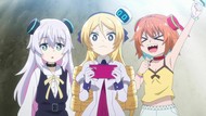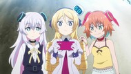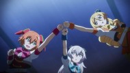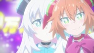 An extra long idol segment that goes for two thirds of the episode. My favorite thing in the world ever. The production and variation was a little higher than the vampire show, I guess, and I can see the vision behind "we are enslaved to the idol industry and have to sell singles, so crowbar this crap in however we can." If you can even call that a vision. But mostly, it was the same generic idol montage as ever. Oh, they say it's streamers, but what are streamers now except a different flavor of idol? Particularly when they put on idol costumes and have a little concert. Not even really doing robot stuff. It seemed like they started out, but then the second Machina pops her head off, that's apparently a full channel ban. I'd say I lost the thread here, but I was checked out of this freaking 15 minute segment about two minutes in.