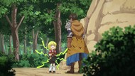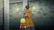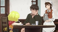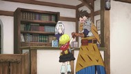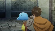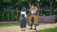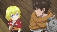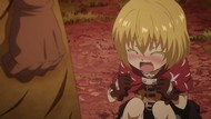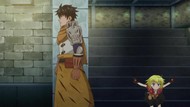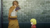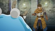 Oh, it starts out with his rags to riches story, but by 90 seconds into the episode, he's the toast of the town which they explain, and the sole Good Adventurer, which they explain despite there not being any Bad Ones, and the local dungeon is more like an office building where you're meant to clock in and out, so on and so forth. About the time they felt the need to explain the concept of orphanages was where my brain had totally atrophied. Admittedly, longer than usual. Perhaps the first minute jolted me into considering that maybe this would be slightly more serious than it looked. Or maybe it was the child violence and unneccesary peeing making me question existence in general. Plenty of overreaction yelling as 'comedy' certainly got rid of that even before the pointless exposition finished the job.