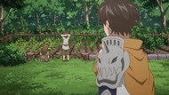 The promos, and the manga for that matter, hide the creepy fanservice angle a bit, but the anime has decided on a different tack, revealing it right away and talking up how big her boobs are. At least we won't have to suffer through any illusions that it's just an innocent child rearing thing. With copious amount of child beating and child peeing herself. Which are still better jokes than the primary content of the episode, which is the same as all these damn things; tutorialized exposition about how much like an RPG world the setting is.