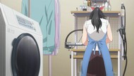 It certainly is what the kids call "slice of life." No story, no comedy, just soporific music while an unnaturally chipper lady goes about doing laundry. Other than the obvious, it's innocuous enough, I guess, but I still don't see the point. In one ear, out the other, pretty literally since it loves to do montages of random town scenery to pad out scenes. What is there to say or even hope for with the show? That she gets with the kid? That next week has slightly different music and maybe it rains? At least she didn't yell a lot.