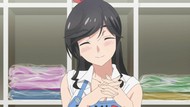 Yep. Certainly what I got from the manga. Random people stop by to announce what a well-adjusted and happy person she is, so she can smile and say "golly gee." Or my favorites, the ones who show up to announce her backstory. I know when I go to the dry cleaner, the small talk I have with them is "Wow, you started this store two years ago, right? It sure has been two years." The highlight of her day is when she runs into the local highschool boy so she can flirt with him. And go all out there. On her hands and knees, fixing his clothes, and then pulling down her apron so she can bend over and give him a full view of her cleavage. Not making the most convincing argument for just an innocent happy little show to end things. Also pretty certain half his lines were "Um" and "Uh."