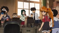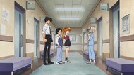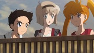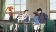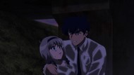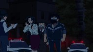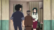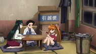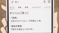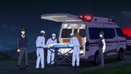 It's pretty incongruous with the tone of how the show has gone, though I guess it began with a skull-stealing furry, so is somewhat in line with that. Not so much the chicken stabbing and then covering Kyouko with blood. That definitely felt like an escalation, even if it evaporated 5 seconds later. He was still too clownish to be an antagonist and I feel like the reveal that he was just some dude needed more oomph since fighting random evil people, or mistaking monstrous people for monsters, isn't something they've done before, but that gets confused with it constantly waffling between is he a youkai or not right from the start. And again, he gets to just wander off, though to be fair this time, he was in a body bag, so we can pin that one on the paramedics.