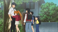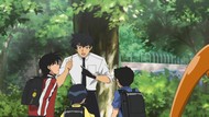 In any case, just an excuse for a "what-if" episode. Everybody's grown up and so we tour all the characters and what they're up to now. All the kids are doing great. Nube was mauled by a tiger on one of their misadventures and is now catatonic and paralyzed. Boy, they sure collectively put that trauma behind them, didn't they? I think it would've worked better had it been treated like a dream, but no, it's meant to be an entirely different parallel reality that we return to briefly for an attaboy at the end. Not sure that'd be my attitude realizing there's other worlds out there without traumatic tiger-related maulings, but what do I know about the Japanese elementary school system?