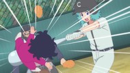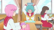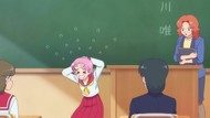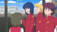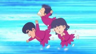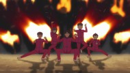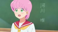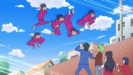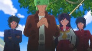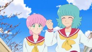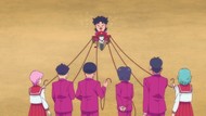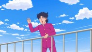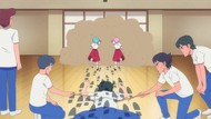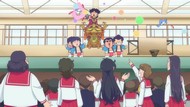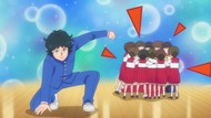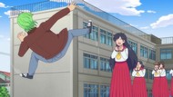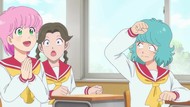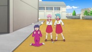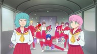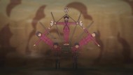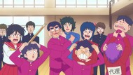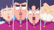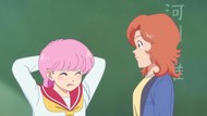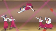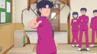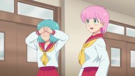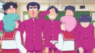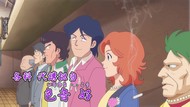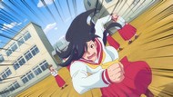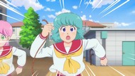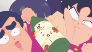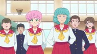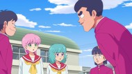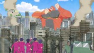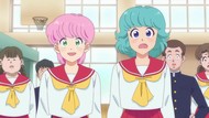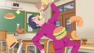 It's certainly trying to bring back the 80s, which seems to be noitaminA's side project lately, much more than the recent Urusei Yatsura revival. Especially the character designs. Everyone has giant poofy hair, chins like a ton of bricks, and eyes that are either way too large or way too small with no in-between. There's just one little rap at the start and then it's entirely 80s, right down to the animators snorting a terrifying amount of cocaine. I think they were afraid of anybody accusing this show of not being chaotic enough. Or loud enough for that matter. There's a throughline of characters yelling the entire episode. Not even always as reaction to anything, simply yelling to yell. The existence of silence displeases god… or something.