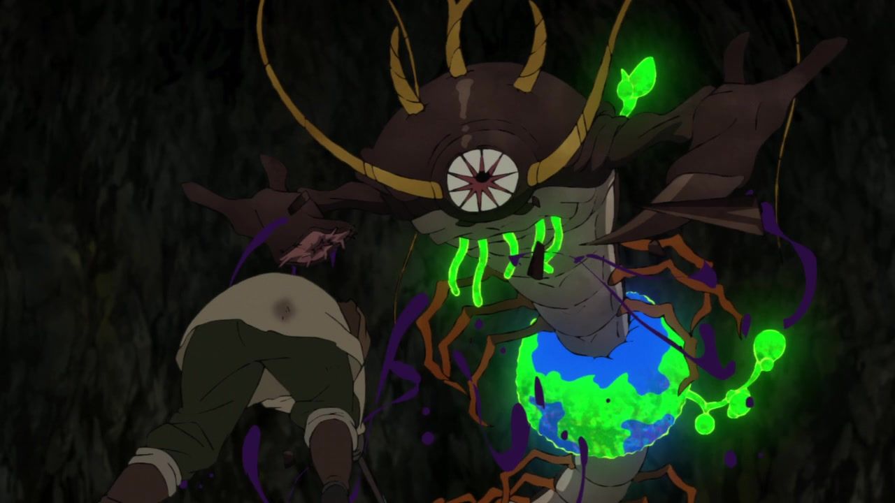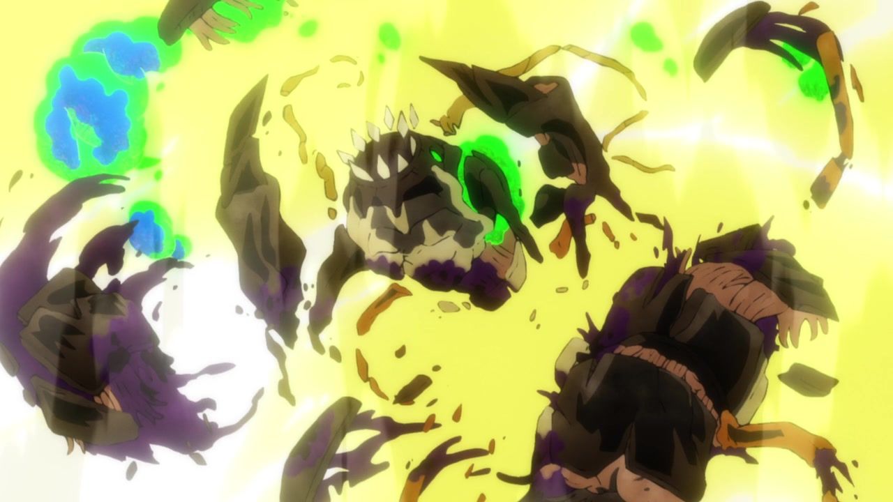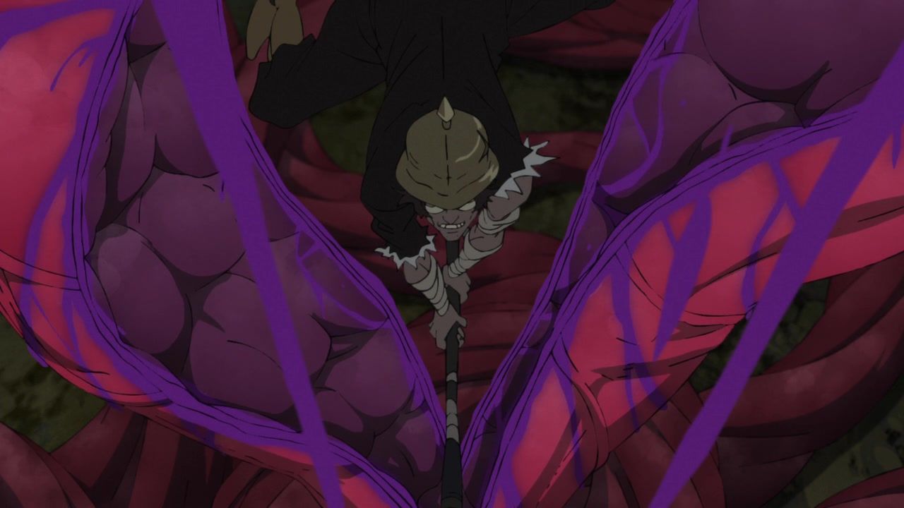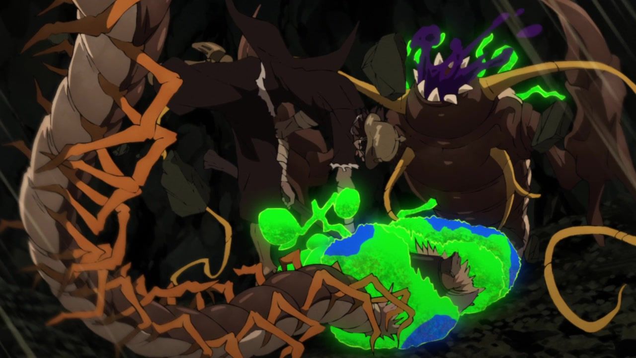 Significantly better than last week in just about every respect, though I wish that they could flatten out the animation quality. At least there were plenty of moments where it looked good this week, but it oscillated wildly between overly fluid animation, speedlines on stills, and janky CGI centipedes undulating in the background on an inconsistent framerate. I feel like if they consolidated that effort into three solid straight minutes, you'd have a sequence that'd really blow people away. Well, you'd probably want to excise all the jank too.