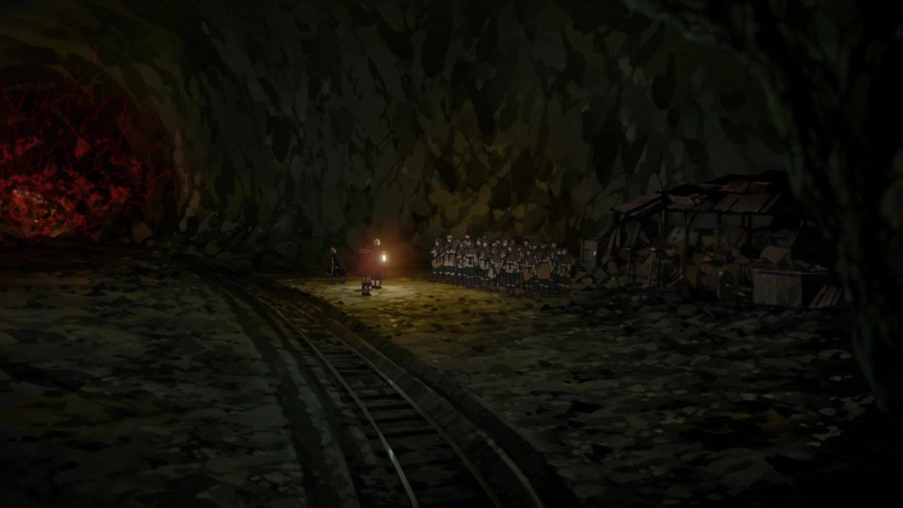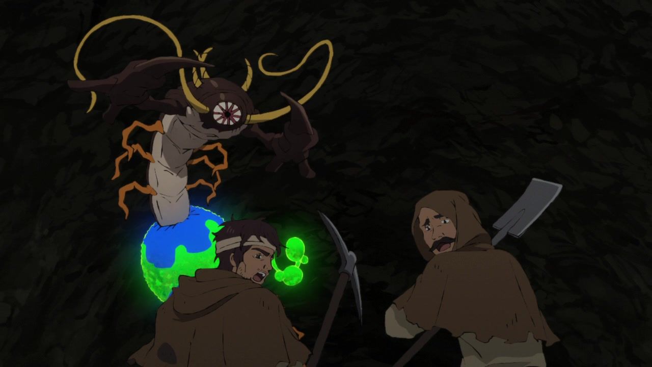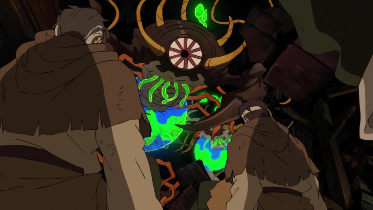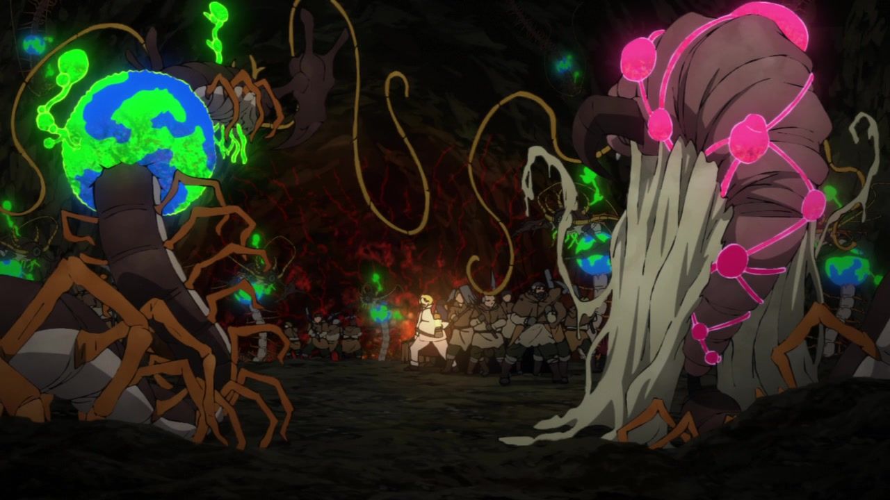 Significantly better than last week in just about every respect, though I wish that they could flatten out the animation quality. At least there were plenty of moments where it looked good this week, but it oscillated wildly between overly fluid animation, speedlines on stills, and janky CGI centipedes undulating in the background on an inconsistent framerate. I feel like if they consolidated that effort into three solid straight minutes, you'd have a sequence that'd really blow people away. Well, you'd probably want to excise all the jank too.