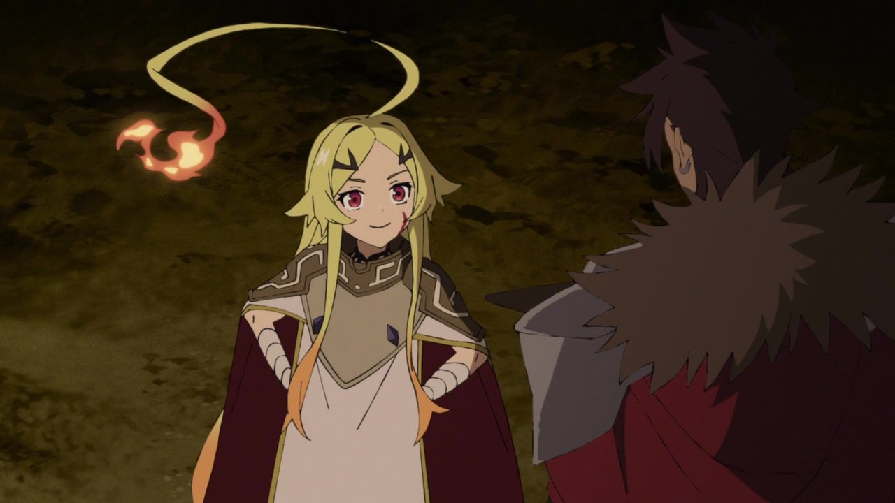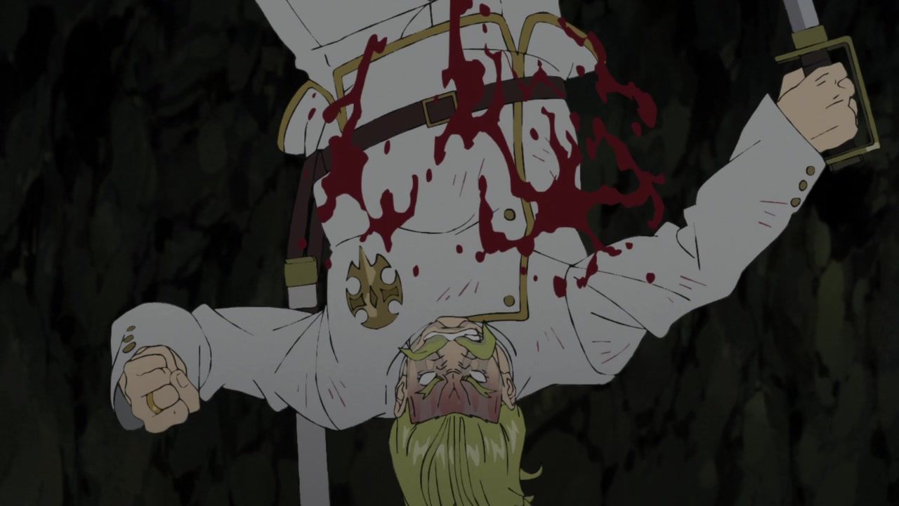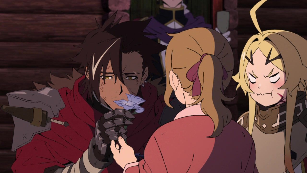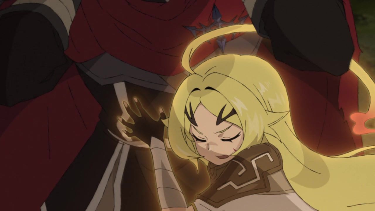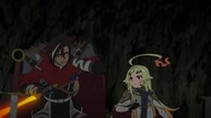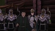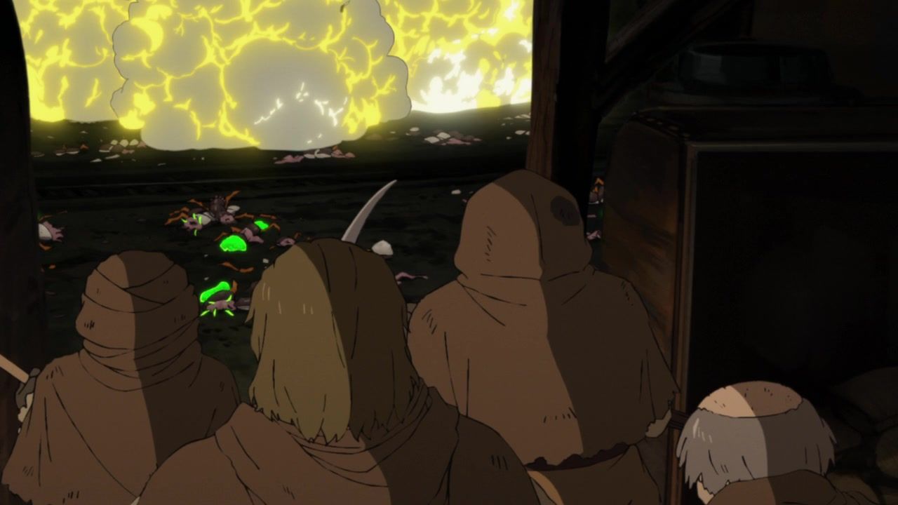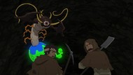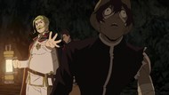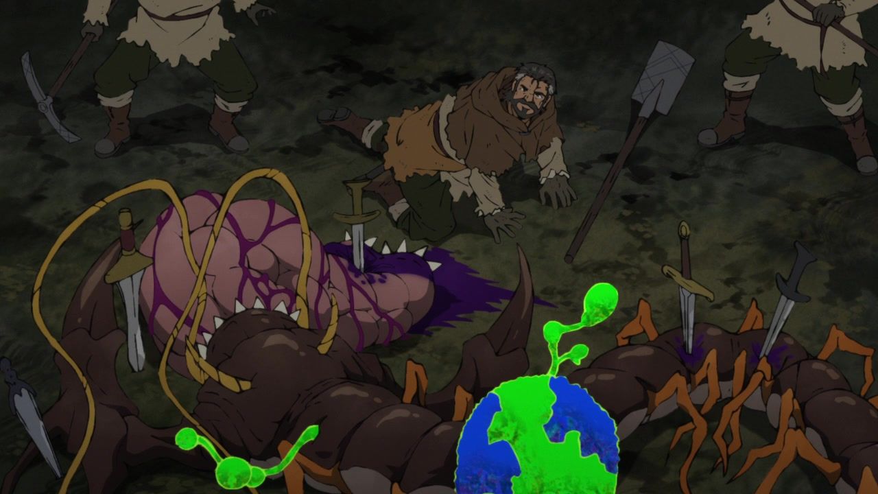 That said, there isn't a ton to talk about. The big monster showed up, and then they beat it. No twists or turns to be found. It was just some tree. Once again, the delusional king dude was the star attraction, inspiring people and saving the day through personal sacrifice. I'm less impressed by the goddess's own bit about how suicidal she is and so it's his duty to protect her from herself. That should've been more contrasted between them since they're both doing the self-sacrifice schtick, but they didn't interact at all. I'm not sure either acknowledged the other's existence even.