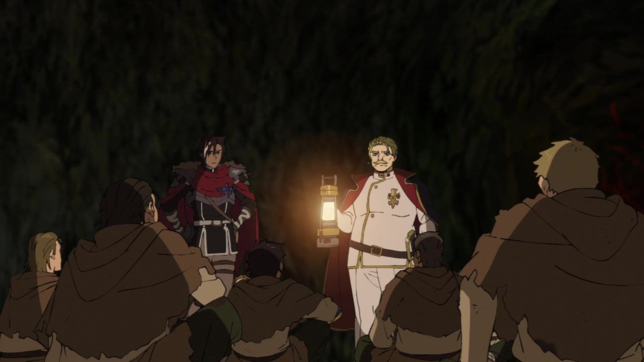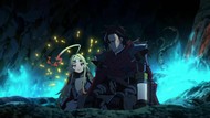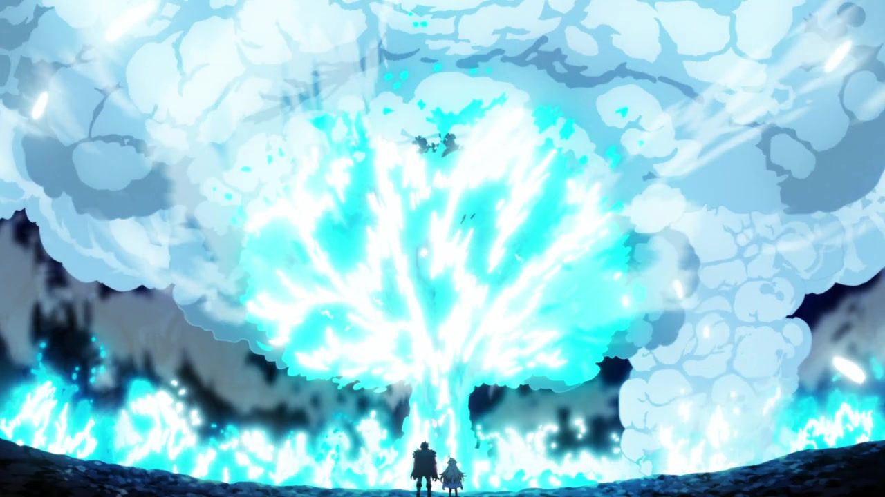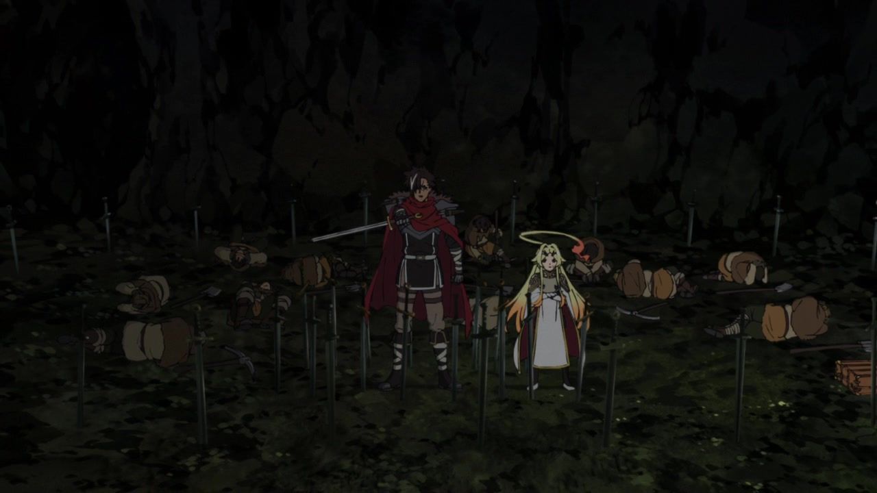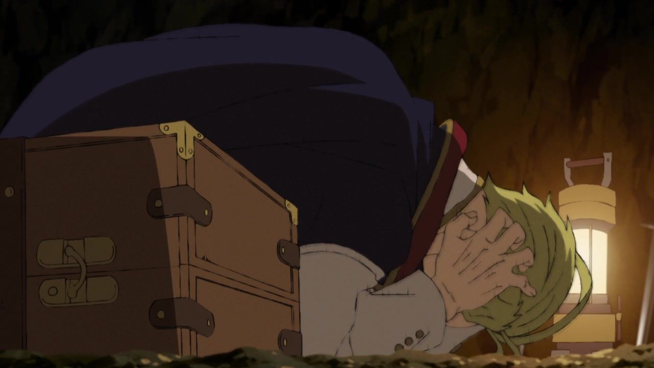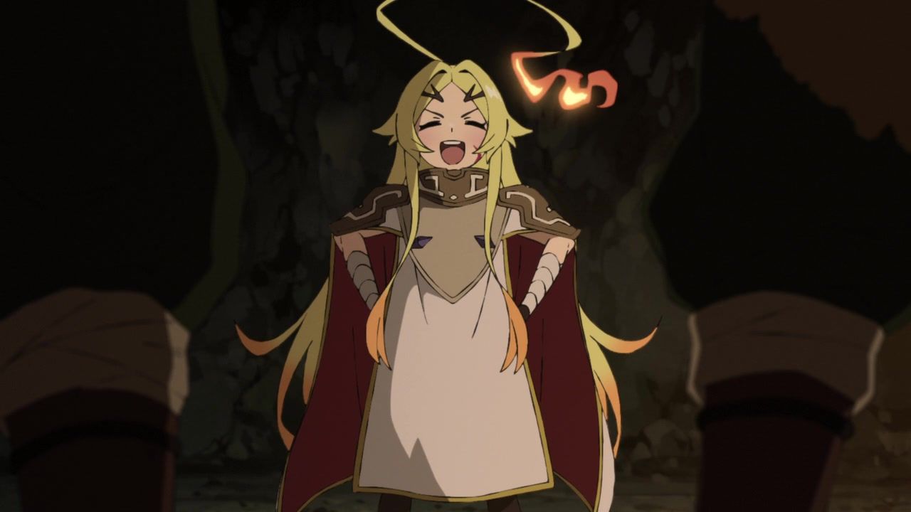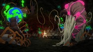That said, there isn't a ton to talk about. The big monster showed up, and then they beat it. No twists or turns to be found. It was just some tree. Once again, the delusional king dude was the star attraction, inspiring people and saving the day through personal sacrifice. I'm less impressed by the goddess's own bit about how suicidal she is and so it's his duty to protect her from herself. That should've been more contrasted between them since they're both doing the self-sacrifice schtick, but they didn't interact at all. I'm not sure either acknowledged the other's existence even.