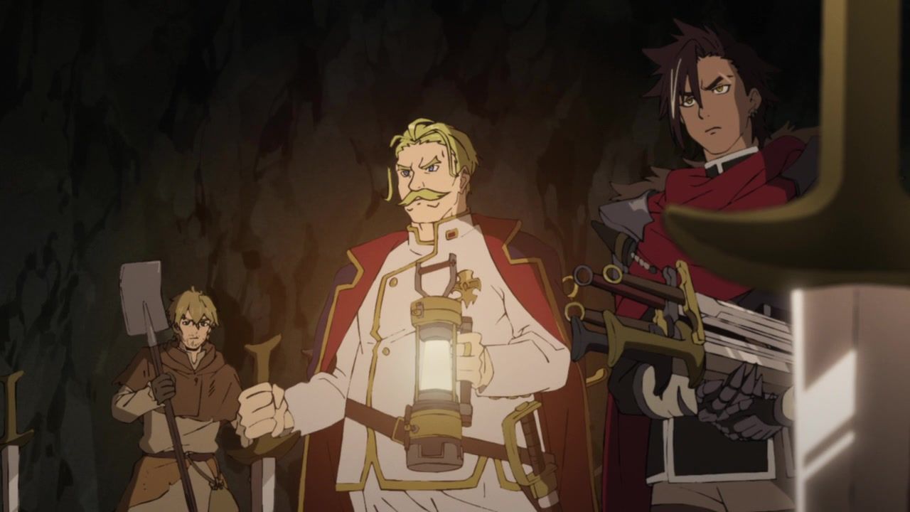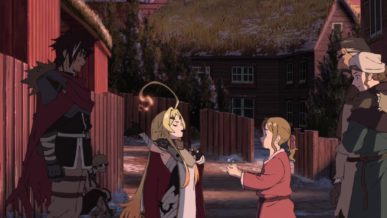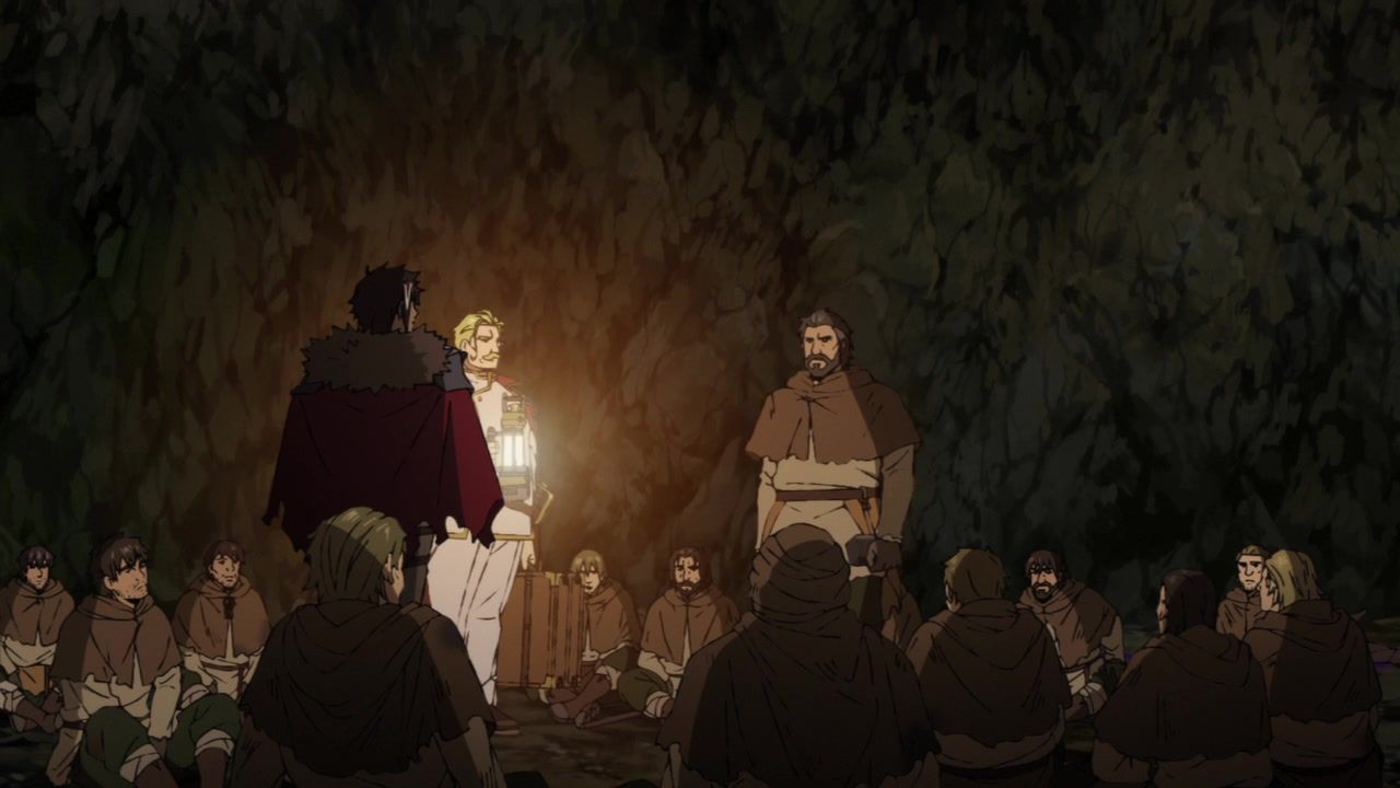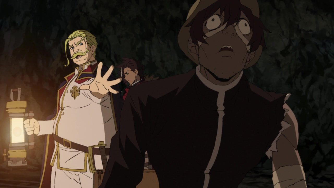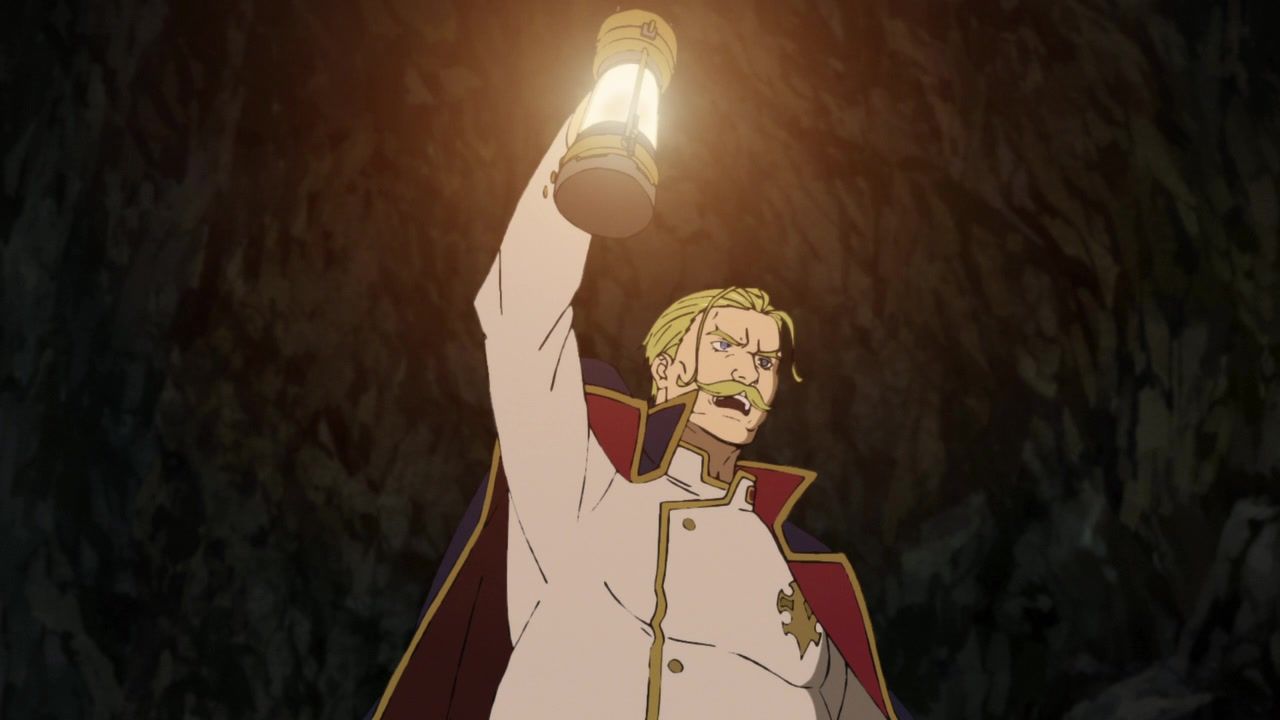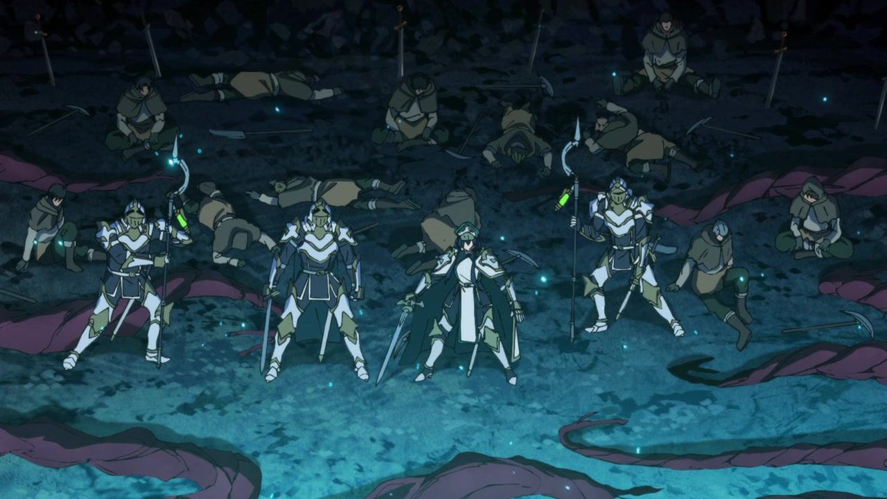 That said, there isn't a ton to talk about. The big monster showed up, and then they beat it. No twists or turns to be found. It was just some tree. Once again, the delusional king dude was the star attraction, inspiring people and saving the day through personal sacrifice. I'm less impressed by the goddess's own bit about how suicidal she is and so it's his duty to protect her from herself. That should've been more contrasted between them since they're both doing the self-sacrifice schtick, but they didn't interact at all. I'm not sure either acknowledged the other's existence even.