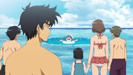 …Fantastic, the fanservice snow girl again. For a beach episode, so extra fanservice on top. I don't expect Shakespeare from this show, but it's not comparing well lately even to the pure fanservice schlock of the slave licking and petting show. Bikinis for kids and feeding her iced coffee makes her tan and busty. Could've at least dragged along the furry dude and slapped him in a speedo. If we're going to be trashy and dumb, let's go whole hog.