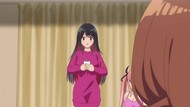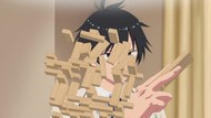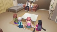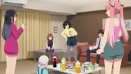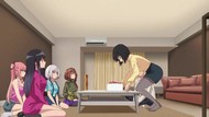 With the jenga bit, very reminiscent of way too many other bad school harem shows of its ilk, but a just plain frustrating and repetitive episode in general. Whether it was the gag of being interrupted and hiding under the bed, everybody buying a cake, the montage of all the girls in casual cosplay, or just that once again it teases progress on any front only to do nothing. If it 'worked' the first time, why not do it three or four more times, all in a row? And then, to end things, recap. Where are they all individually going at 7pm at night that there are five separate cake stores within walking distance of one apartment building? Why are they all even splitting up in the first place?