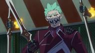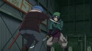 The tone in general was just plain a lot darker, though I think it did get a bit gratuitous towards the end. It's clear the politician dude is abusing his family, but you still cut the girl in half after the whole "try not to kill them" speech without even trying to neutralize her, and then the supposed friend to the orphans immediately gutted the other one. We just had a whole flashback and discussion about whether or not the panda corpse mutilator and child soldier trainer is really THAT evil, and two minutes later, he's out here murdering kids. I think we can probably close the book on that one.