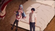 And then there's finally thwarting the monsters. They roll up, rescue everybody, and kill the… I guess only two generics left to guard things. And then decide to sleep there instead of going back to their own hotel for some reason. Might make sense if you were in evil demon land. Not so much when you're down town. Regardless, some horny evil woman teleporting into his room is just something that happens every four episodes anyway, so despite its protestations that this is new and worthy of a cliffhanger, we're just replaying old tunes. Old tunes, which I'll remind you, is also literally how this season began, doing this exact thing. After 8 episodes and two trainining arcs, we've returned literally to where we started, just to do it again.