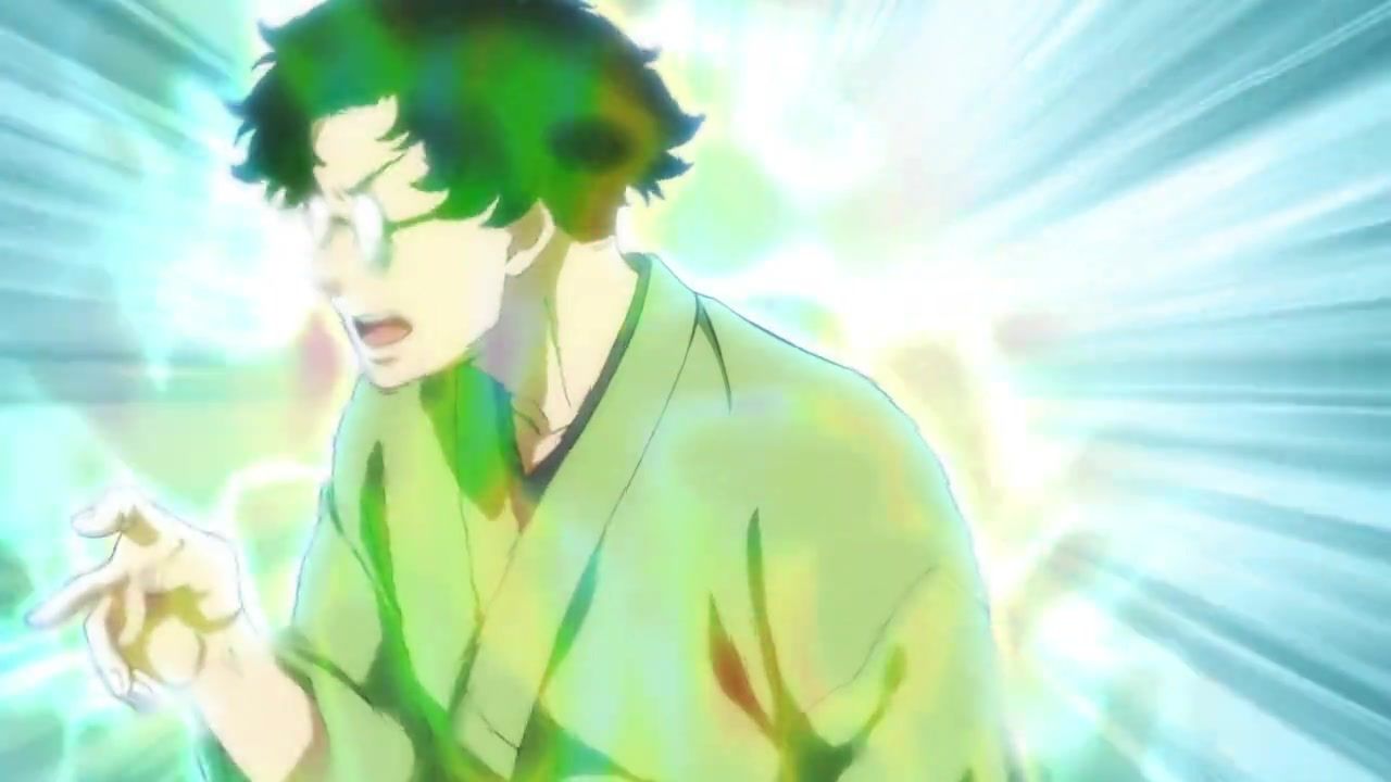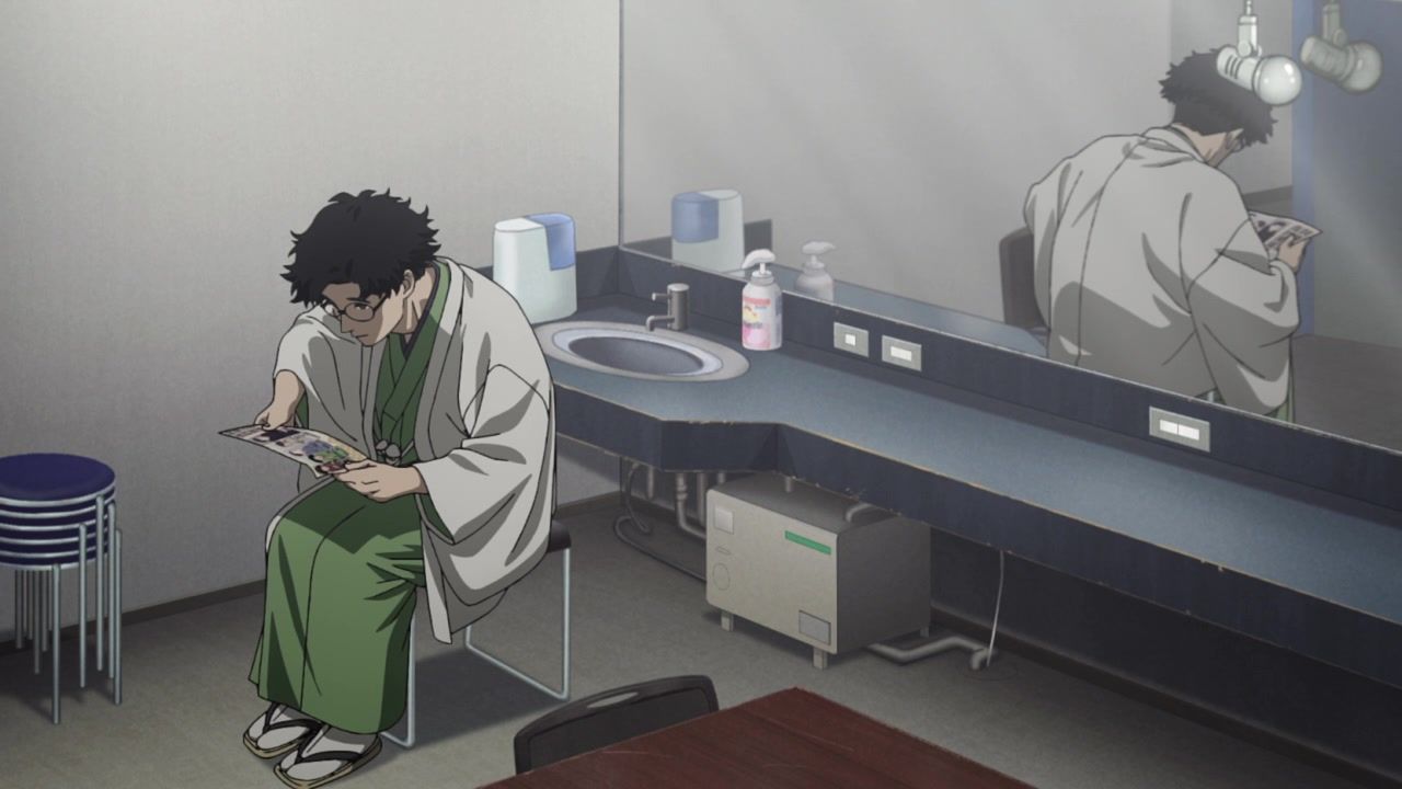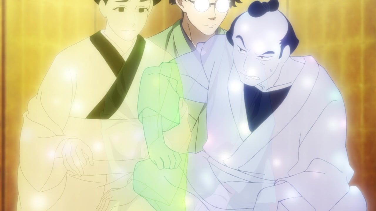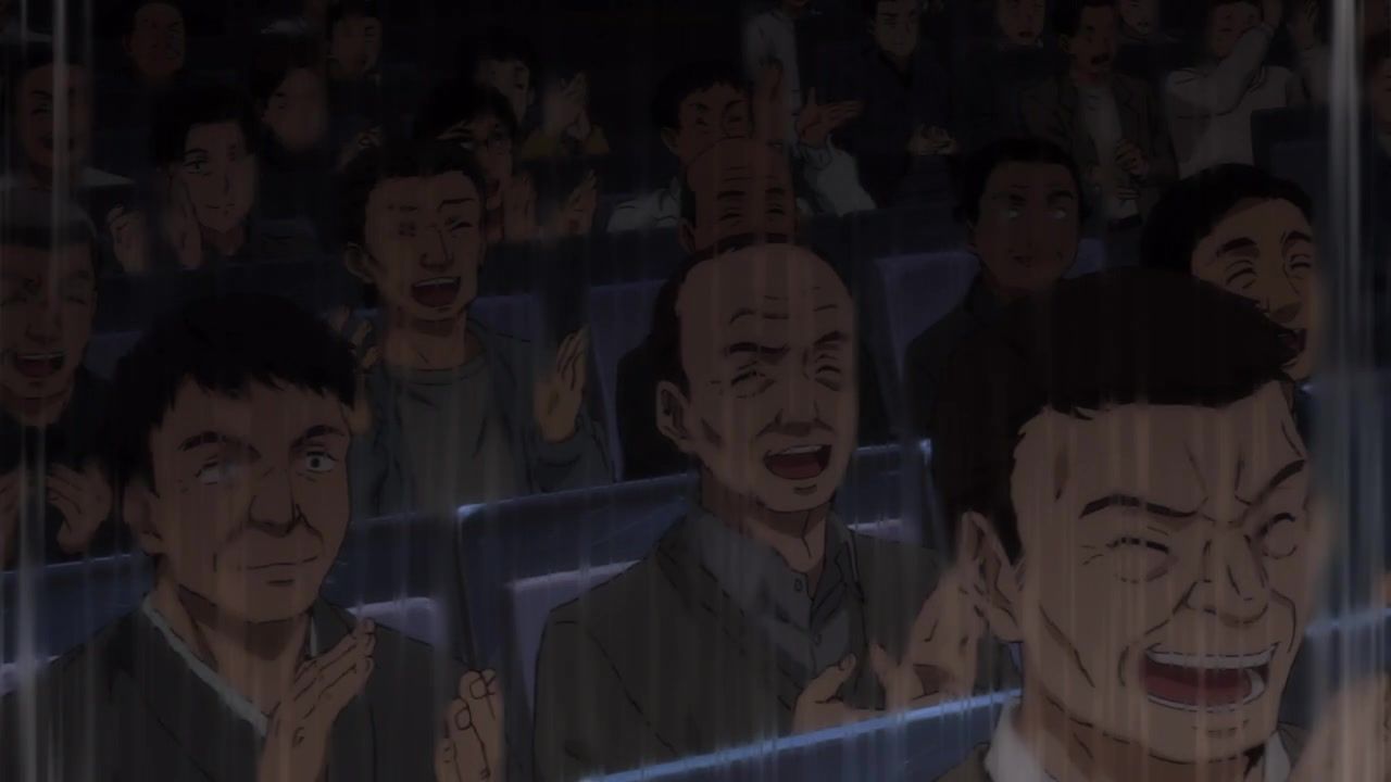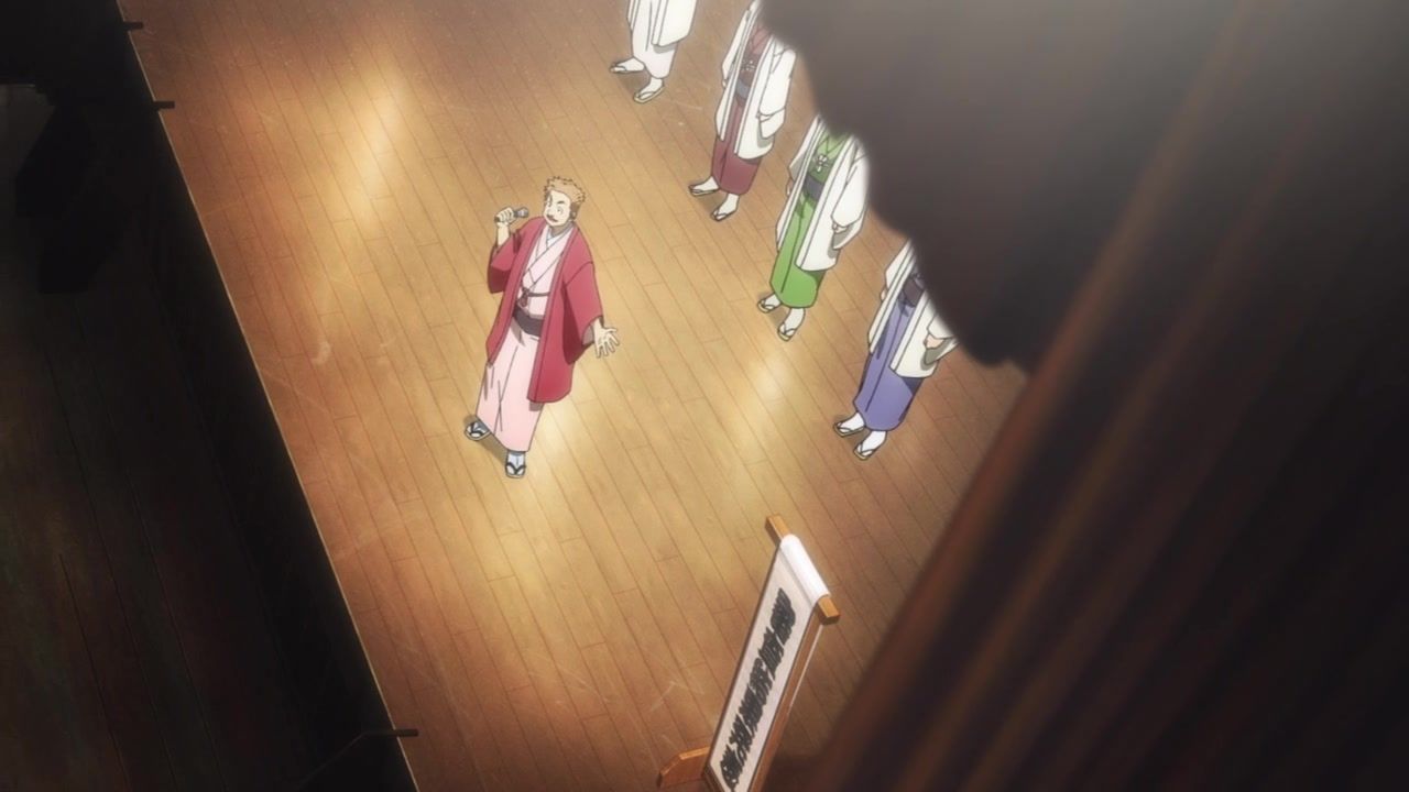But then his big performance at the rakugo regionals started, and yeah, there was still plenty of rotoscoping, but most of it got blasted in the face with technicolor explosions and phantoms of the story wandering around… or just random stills. There was neither cohesion in the visuals, nor was it actually focused on, you know, his rakugo performance. It's trying to show how he's bringing it all to life, but it's actually showing that his performance alone didn't. I assume that we've all been forced to sit through one-man plays at some point in our lives, or at least standup routines. Unless you were on hallucinogenics, there probably weren't flashing lights and ghosts. Which makes it not actually about rakugo, but some arbitrary nonsensical thing instead, which fits with the dour old dude also throwing everybody out for not having enough heart of rakugo or whatever. But also makes it not really about actual performance, but about hand wavey magic. Which is being judged. On how magical it is. And only counts if it gets to go to the best magical school for magical certification. Where his dream is not to perform rakugo, but to get a good grade for performing rakugo, because it's not worth doing without getting at least a B+. …Yeah, you've lost me.