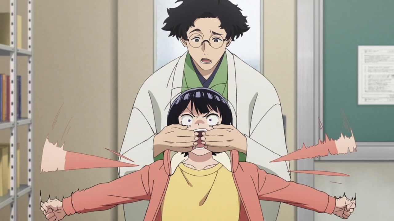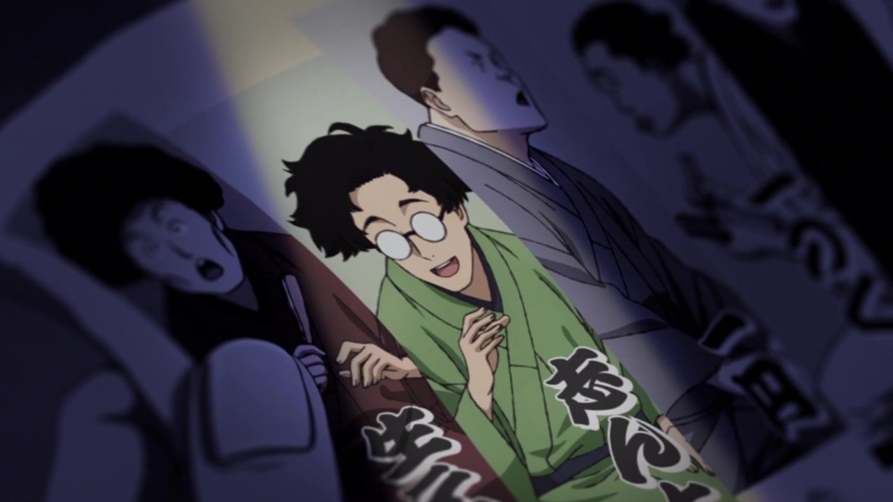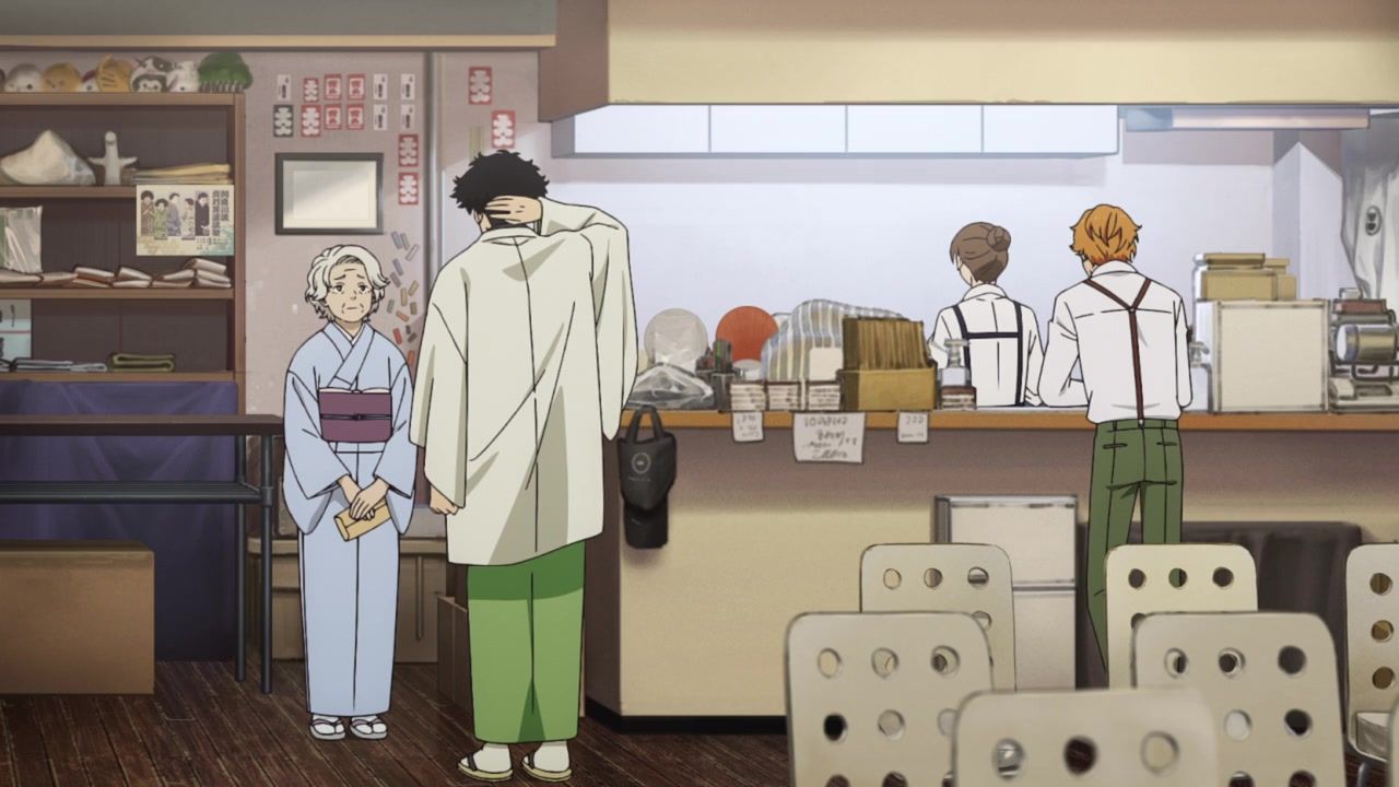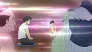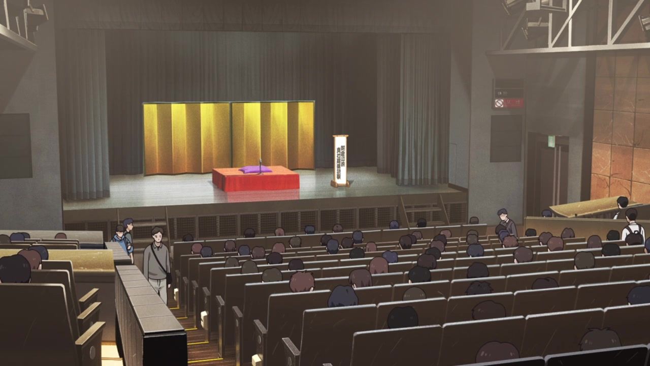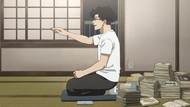 But then his big performance at the rakugo regionals started, and yeah, there was still plenty of rotoscoping, but most of it got blasted in the face with technicolor explosions and phantoms of the story wandering around… or just random stills. There was neither cohesion in the visuals, nor was it actually focused on, you know, his rakugo performance. It's trying to show how he's bringing it all to life, but it's actually showing that his performance alone didn't. I assume that we've all been forced to sit through one-man plays at some point in our lives, or at least standup routines. Unless you were on hallucinogenics, there probably weren't flashing lights and ghosts. Which makes it not actually about rakugo, but some arbitrary nonsensical thing instead, which fits with the dour old dude also throwing everybody out for not having enough heart of rakugo or whatever. But also makes it not really about actual performance, but about hand wavey magic. Which is being judged. On how magical it is. And only counts if it gets to go to the best magical school for magical certification. Where his dream is not to perform rakugo, but to get a good grade for performing rakugo, because it's not worth doing without getting at least a B+. …Yeah, you've lost me.