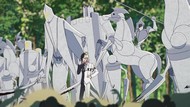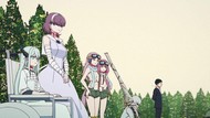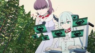 If you want to see this kind of thing done well, I'd point to either Horizon in the Middle of Nowhere for the montage of competent weirdos all flexing their powers yet accomplishing absolutely nothing, or Ga-Rei Zero for those same weirdos getting shockingly massacred. But since this is the third episode and these weirdos appeared out of nowhere to fight in place of the actual characters, their fates are well sealed before they even take the stage, which undermines it a lot. As does, again, the lack of a budget. But I think that ship has long since sailed.