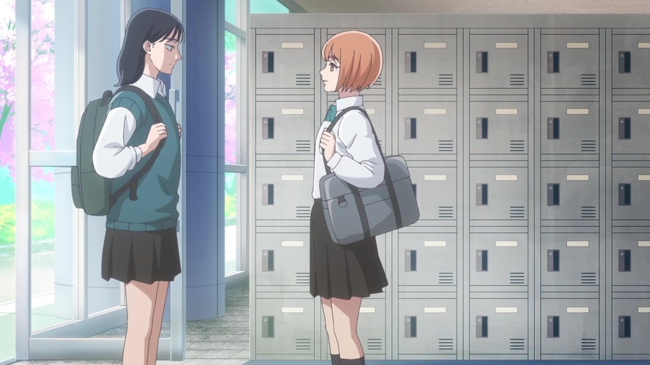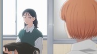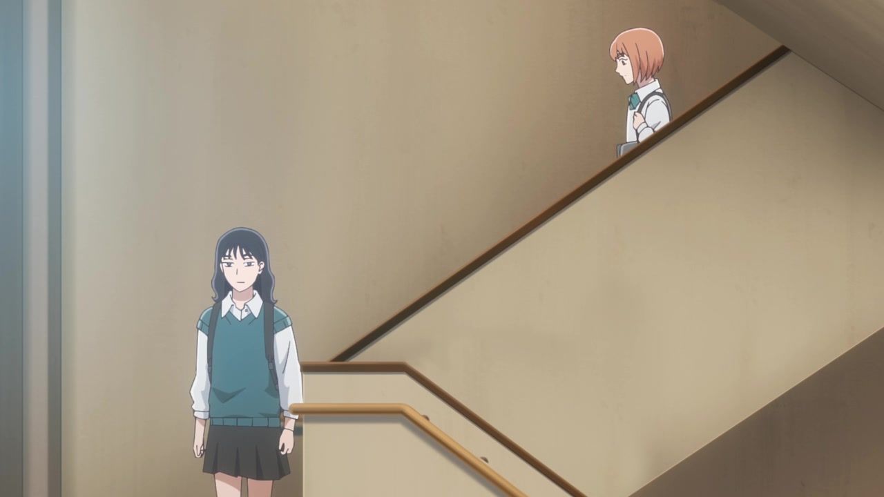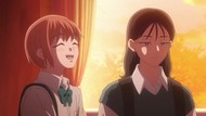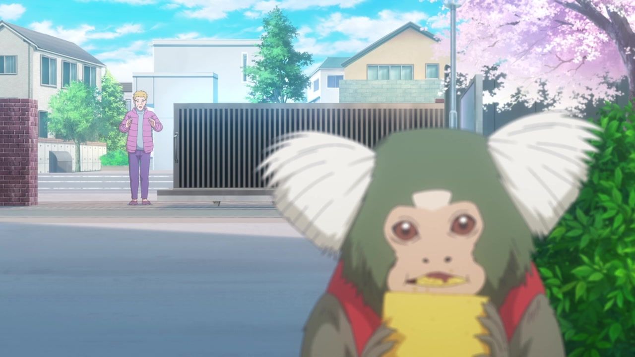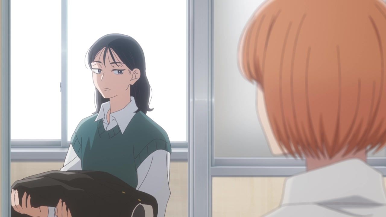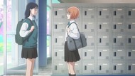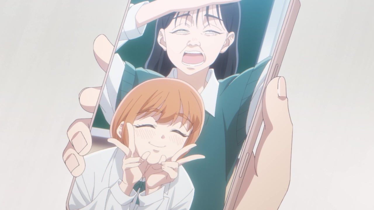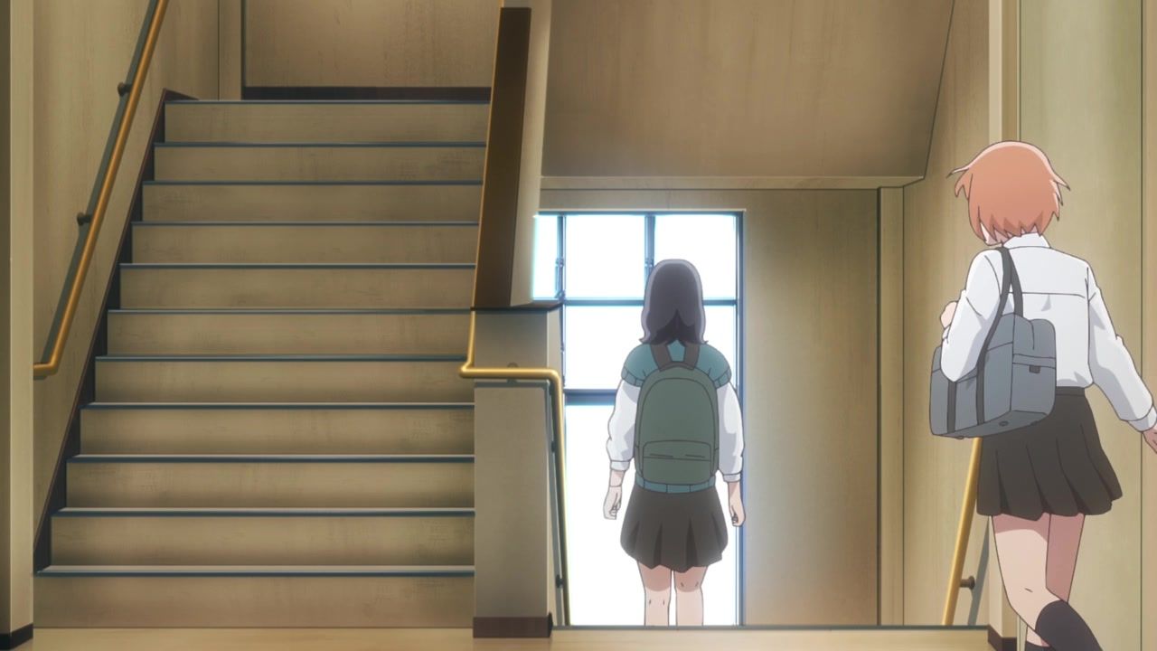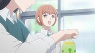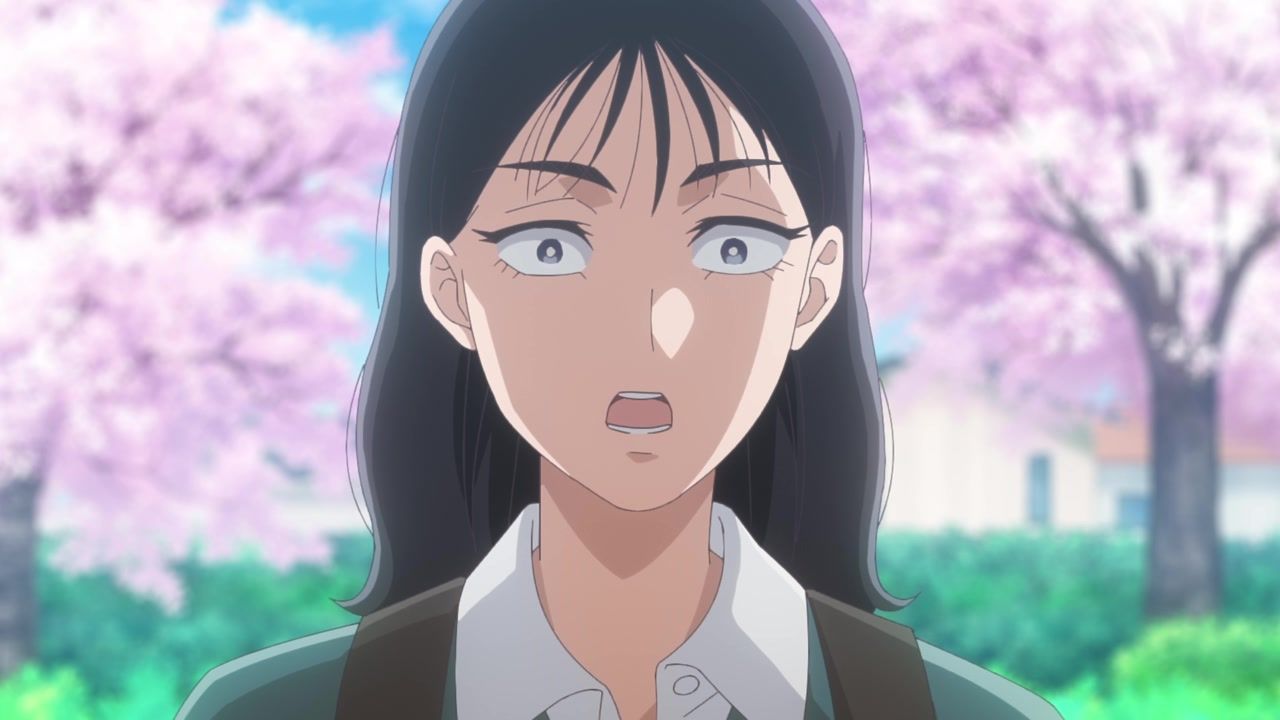 I think the animators might've been a bit bored. The opening is full of surreality, visual flair, and general nonsense. And then the actual episode itself is 20 minutes of two girls doing manzai. Did they fire everybody who worked on the opening as soon as it was done? Very rarely, it seems to almost remember that other forms of comedy can exist, like when the dude goes for a kiss and sticks his tongue entirely out like a frog, but it's not even clear to me that the animators realized that could be funny. You can tell when they think a joke has been made by the characters overreacting, but that had a deadpan internal narration about how great friendship was running over the whole thing. So it wasn't a joke? It was girl power? If you say so.