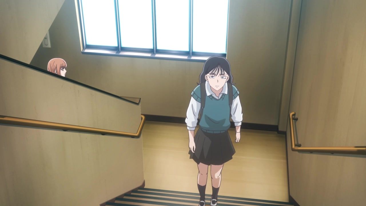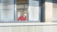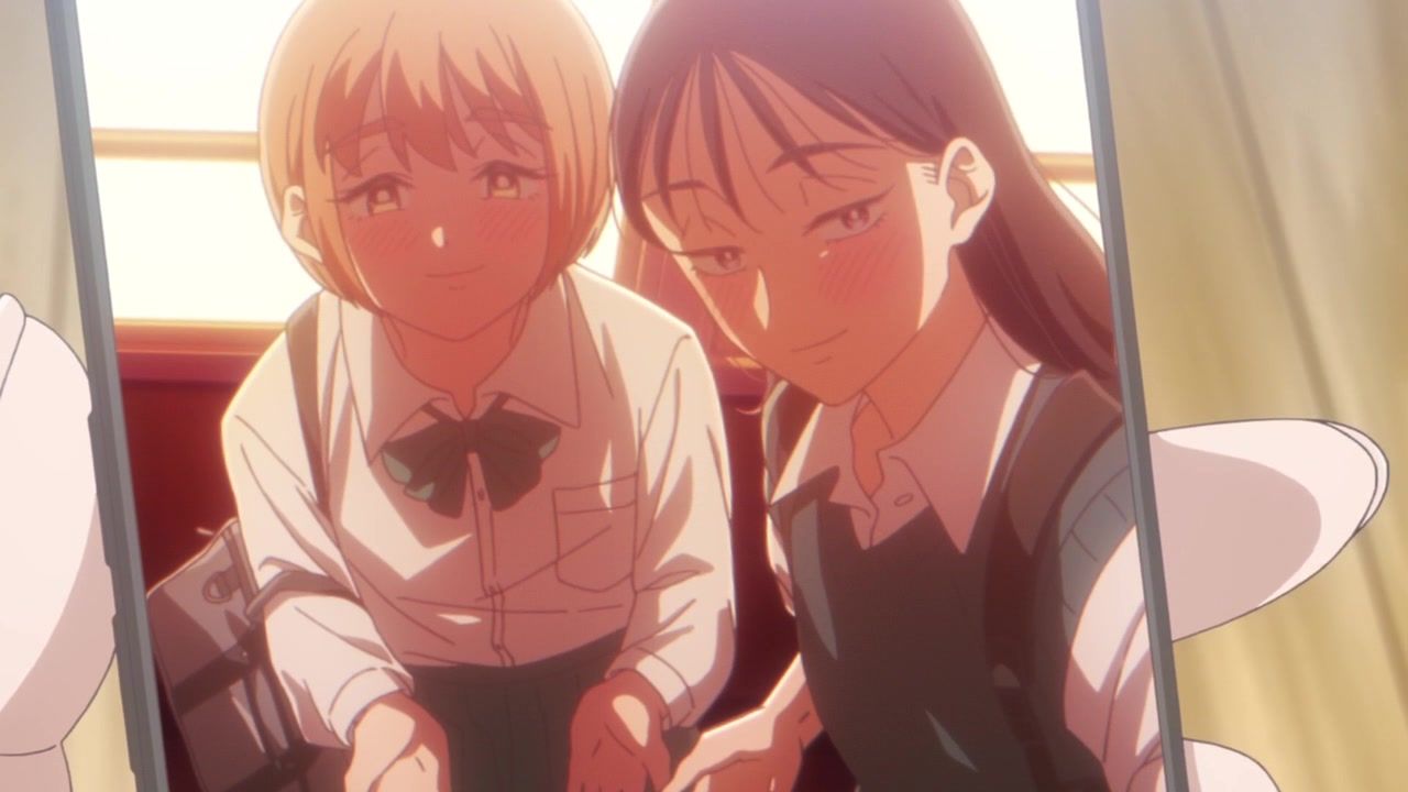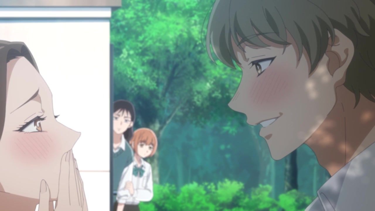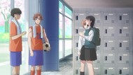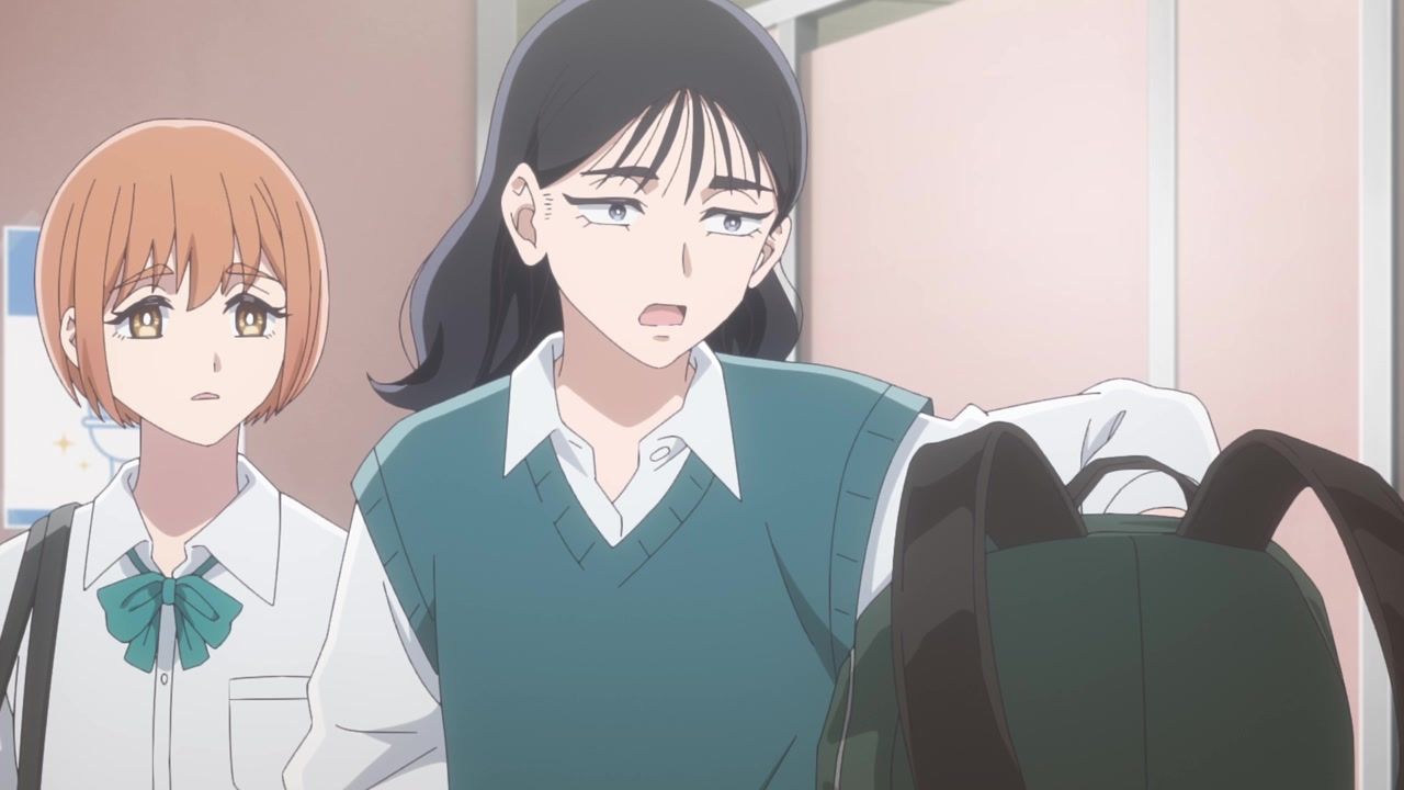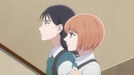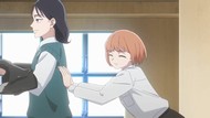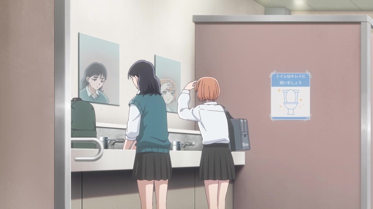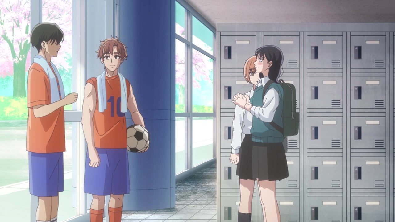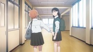 I think the animators might've been a bit bored. The opening is full of surreality, visual flair, and general nonsense. And then the actual episode itself is 20 minutes of two girls doing manzai. Did they fire everybody who worked on the opening as soon as it was done? Very rarely, it seems to almost remember that other forms of comedy can exist, like when the dude goes for a kiss and sticks his tongue entirely out like a frog, but it's not even clear to me that the animators realized that could be funny. You can tell when they think a joke has been made by the characters overreacting, but that had a deadpan internal narration about how great friendship was running over the whole thing. So it wasn't a joke? It was girl power? If you say so.
