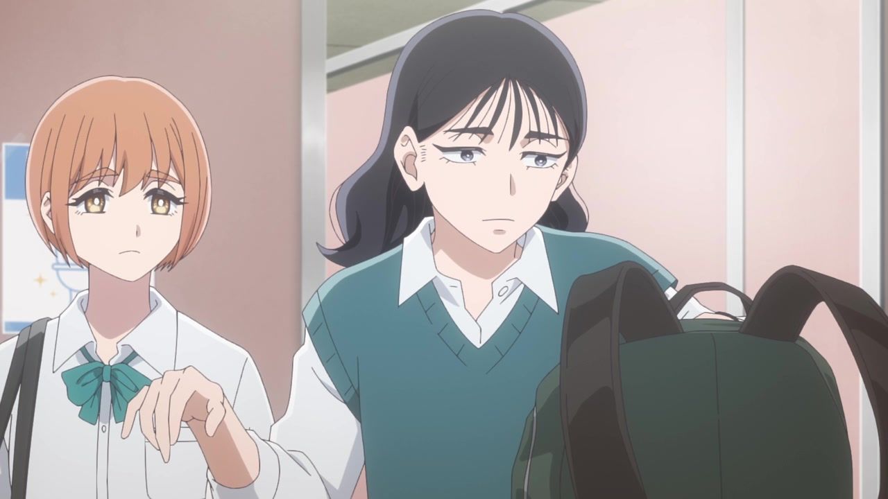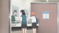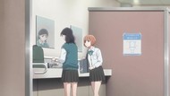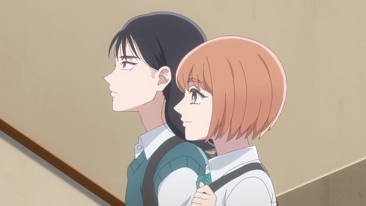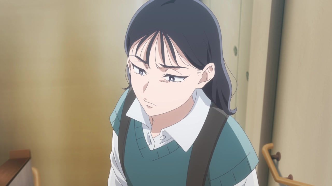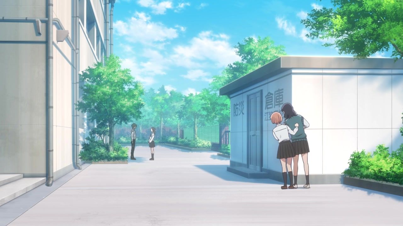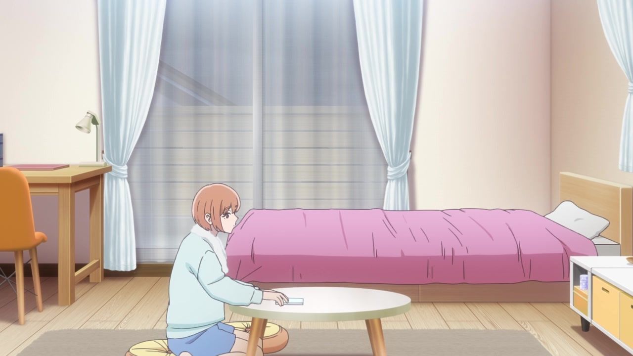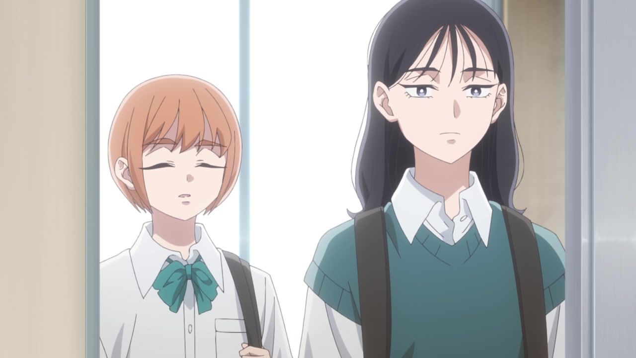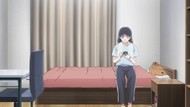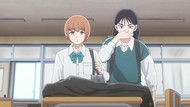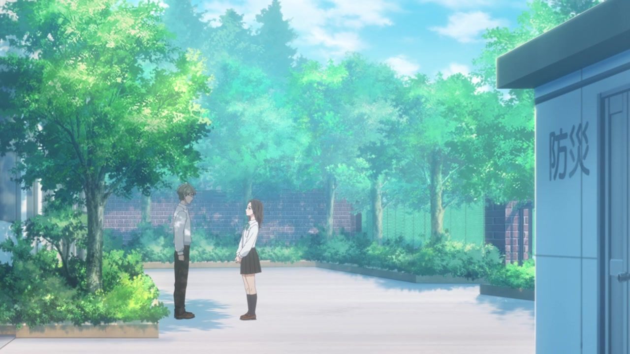 I think the animators might've been a bit bored. The opening is full of surreality, visual flair, and general nonsense. And then the actual episode itself is 20 minutes of two girls doing manzai. Did they fire everybody who worked on the opening as soon as it was done? Very rarely, it seems to almost remember that other forms of comedy can exist, like when the dude goes for a kiss and sticks his tongue entirely out like a frog, but it's not even clear to me that the animators realized that could be funny. You can tell when they think a joke has been made by the characters overreacting, but that had a deadpan internal narration about how great friendship was running over the whole thing. So it wasn't a joke? It was girl power? If you say so.