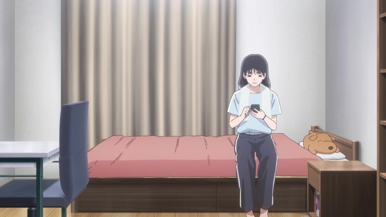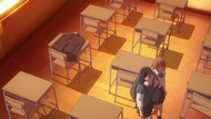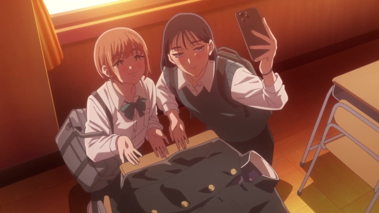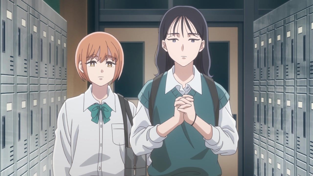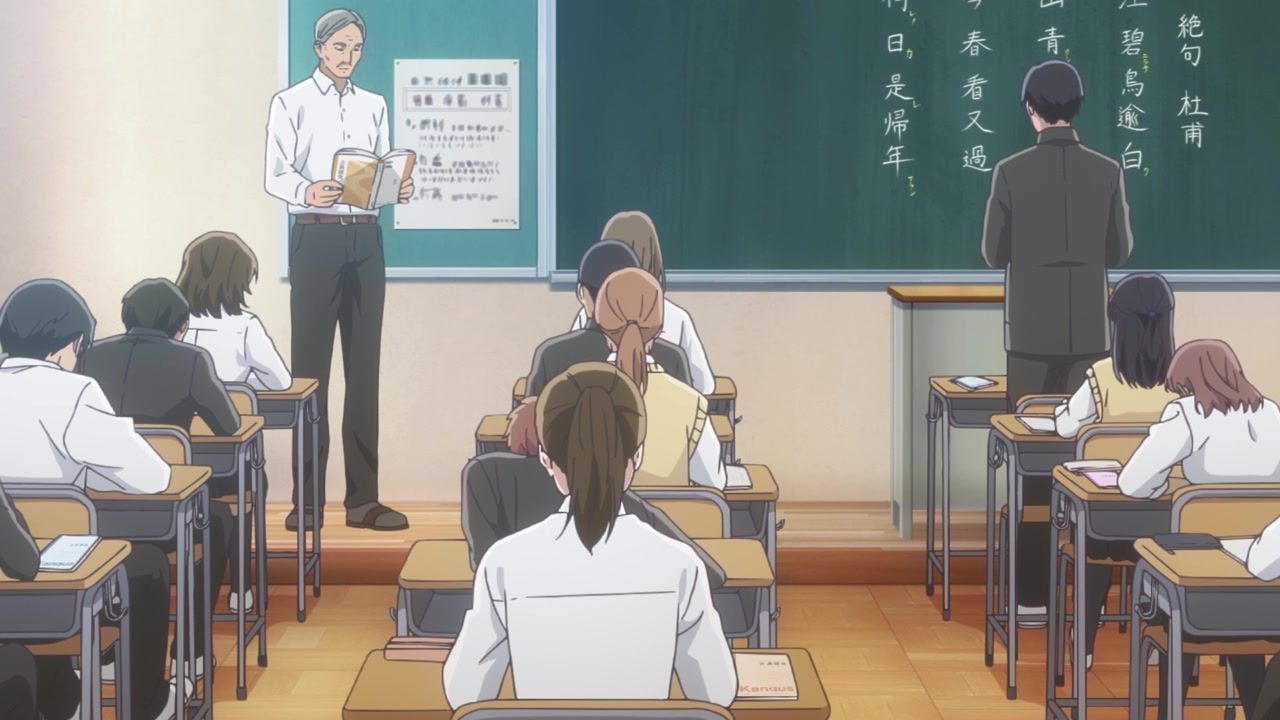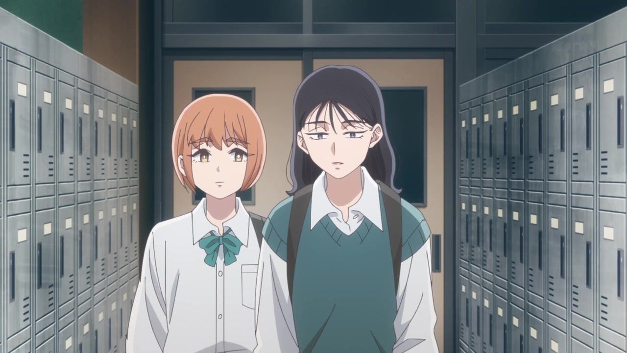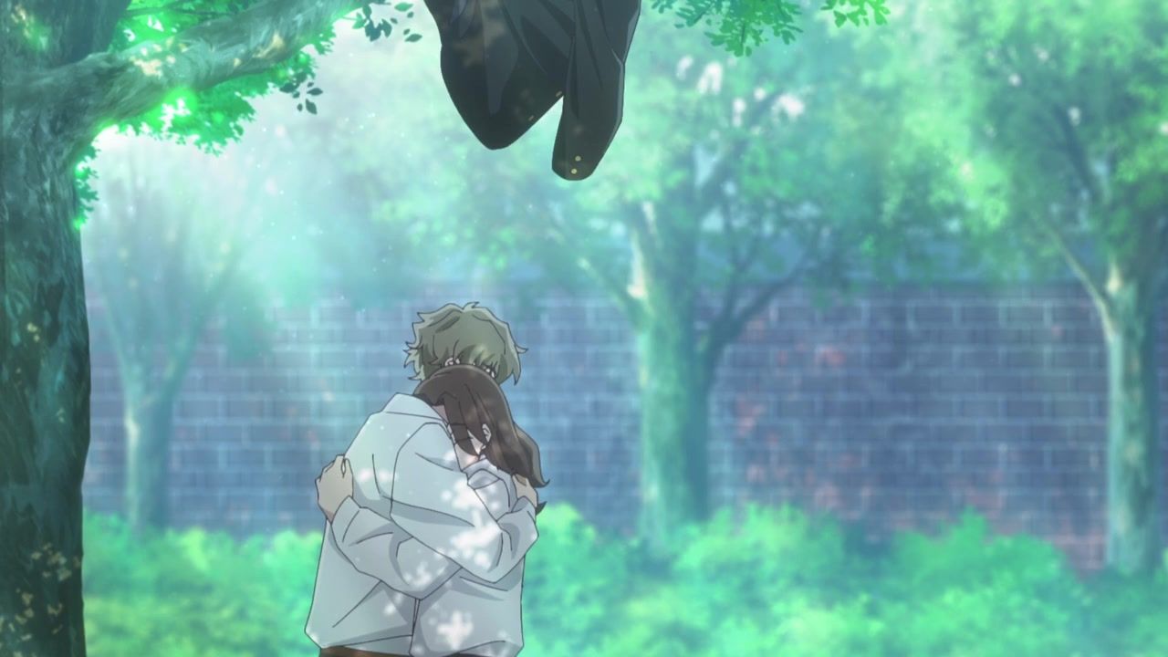 I think the animators might've been a bit bored. The opening is full of surreality, visual flair, and general nonsense. And then the actual episode itself is 20 minutes of two girls doing manzai. Did they fire everybody who worked on the opening as soon as it was done? Very rarely, it seems to almost remember that other forms of comedy can exist, like when the dude goes for a kiss and sticks his tongue entirely out like a frog, but it's not even clear to me that the animators realized that could be funny. You can tell when they think a joke has been made by the characters overreacting, but that had a deadpan internal narration about how great friendship was running over the whole thing. So it wasn't a joke? It was girl power? If you say so.