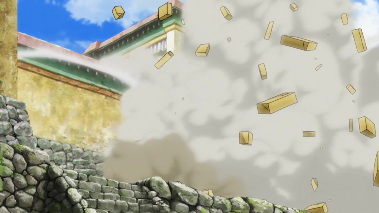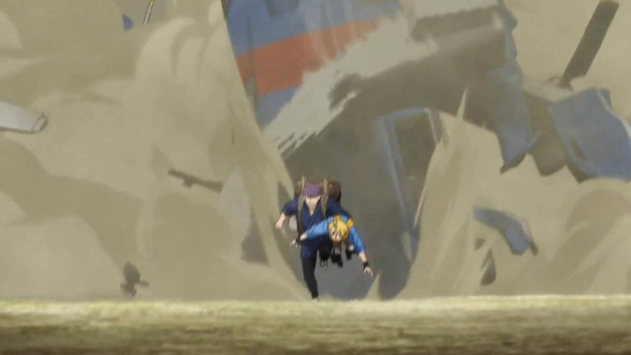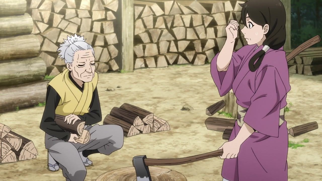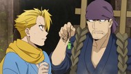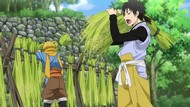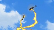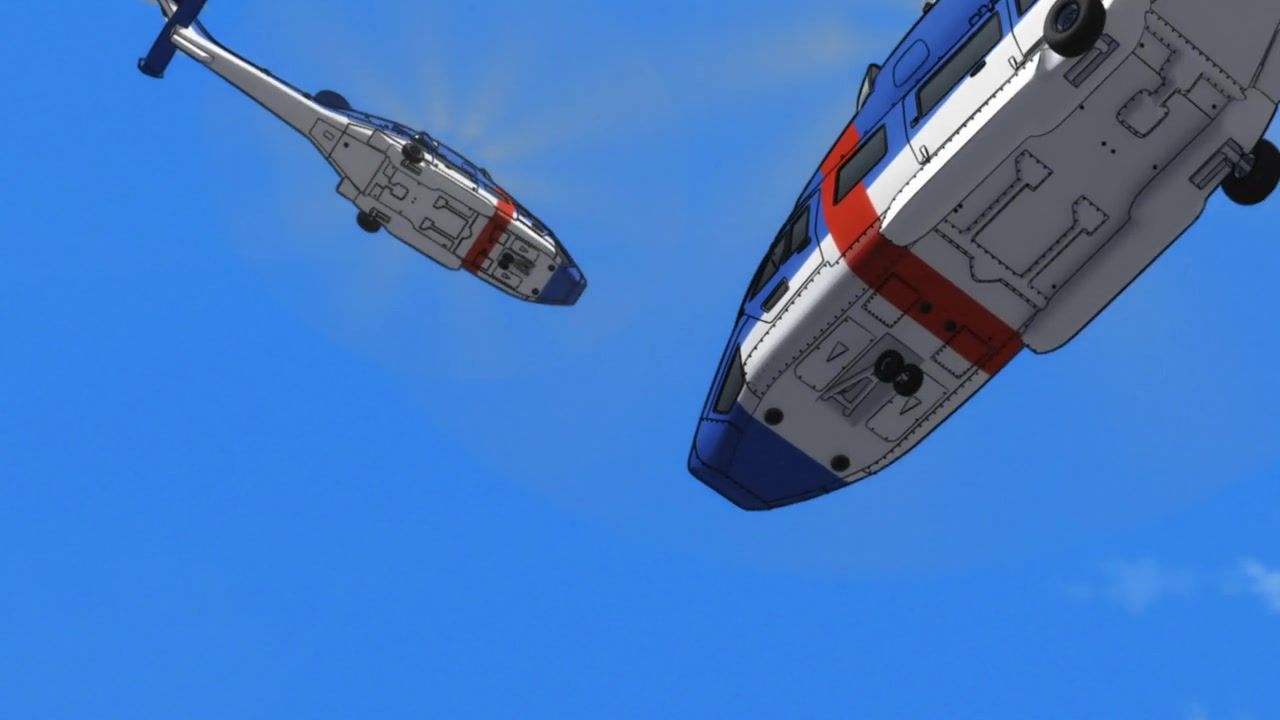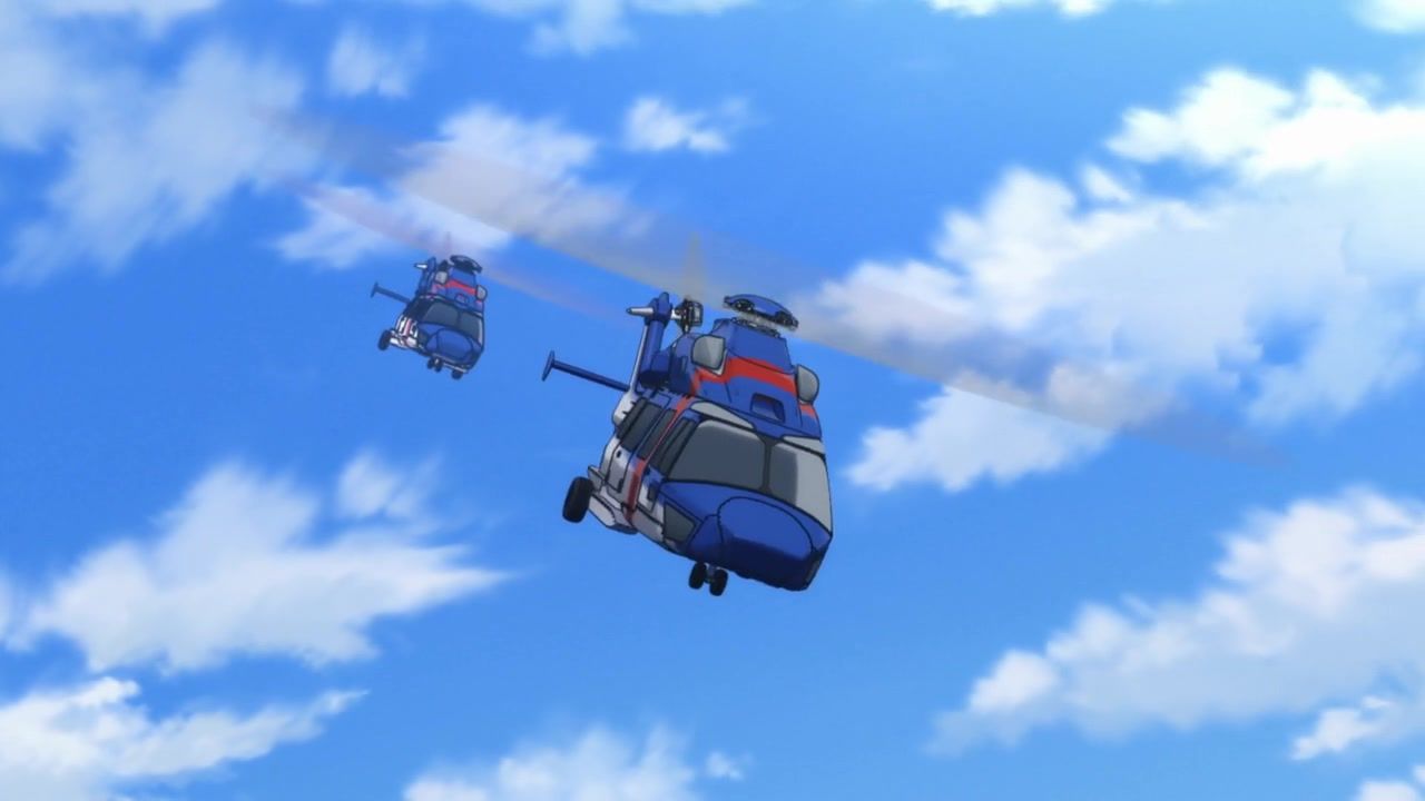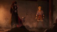 The awkwardness of the setting isn't improved much by the animation. Maybe the pacing of having it go from magical medieval village to everybody over five minutes instead of five pages helps a little bit, but you're still jumping right from gossipping about dragons to literally everybody leaping from helicopters while all the Truman Show villagers whip out glocks, but also magical teeth monsters bite everybody's heads off for some gratuitous villager jellification in order to meet its edgelord pre-reqs.