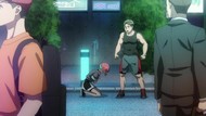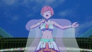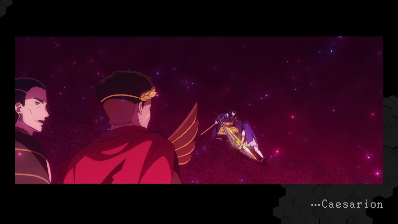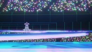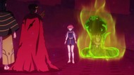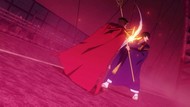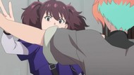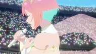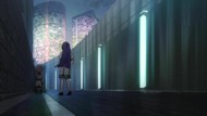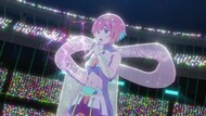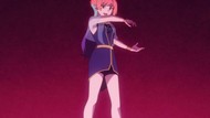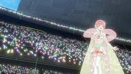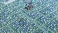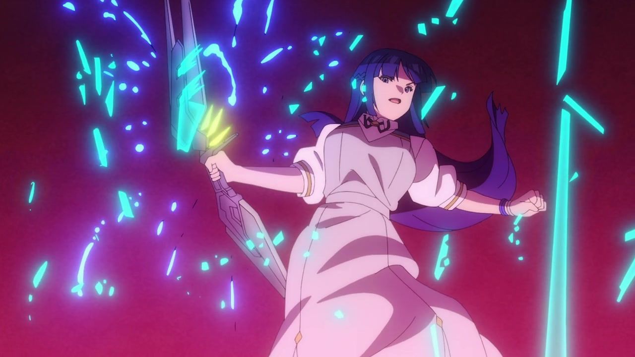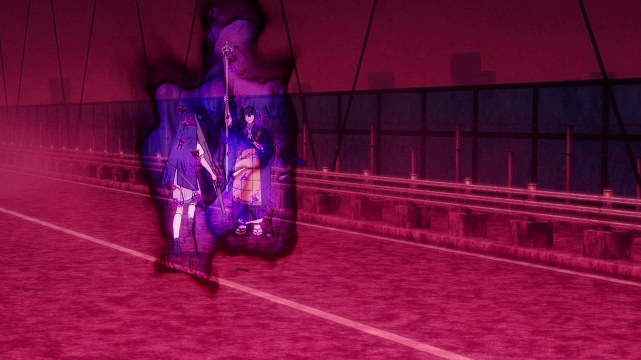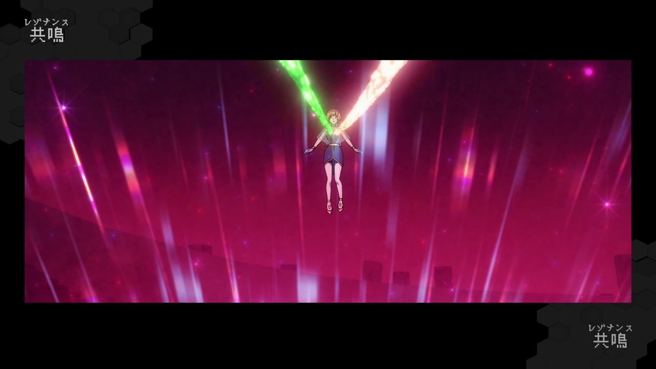 Then there's also what happens any time it actually tries to animate anything, which, oddly enough, didn't really include the opening concert. It… does not use CGI well. But it also doesn't use it consistently at all. She'll just spontaneously transform into CGI running down an alley, and then be right back to 2D animation in the next shot. But it also doesn't use it for when they start doing magical girl transformations and carpet bombing each other. But one summons rocks, and those are CGI. Then the Symphogear sequence starts, which I'm pretty sure is just a straight up advertisement for the crap this came from originally… but that's also barely animated despite the dramatic letterboxing and lyrics being printed on screen and looks like they probably literally just took a standard half-assed Vocaloid song like you'd see on Youtube and slapped that into the episode. It's baffling. Which sums up the whole episode, honestly.