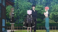 Anime, how many shows are we going to have this season about a dude dragging a bunch of teenage girls off to a compound in the woods to learn magic? And same as all of them, the whole schtick of learning the minutia of the setting and the specifics of magic remains utterly tedious. And that's what consued two thirds of the episode. I. Do. Not. Care. I couldn't even say that all the new characters were introduced well, or were focused on. Even the main character barely did anything more than stand there and say "Oh, that's interesting." Which is better than saying "Huh?" and repeating back the previous sentence to cue further explanation.