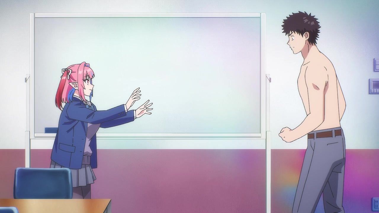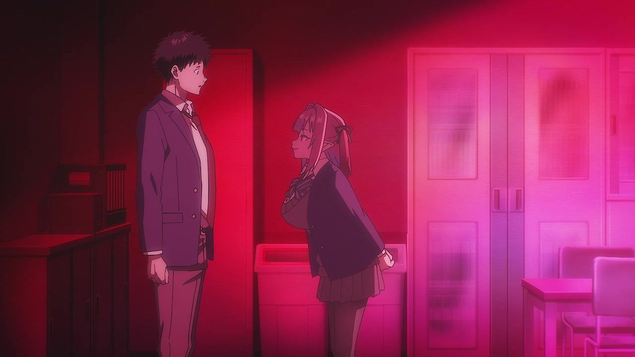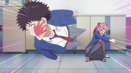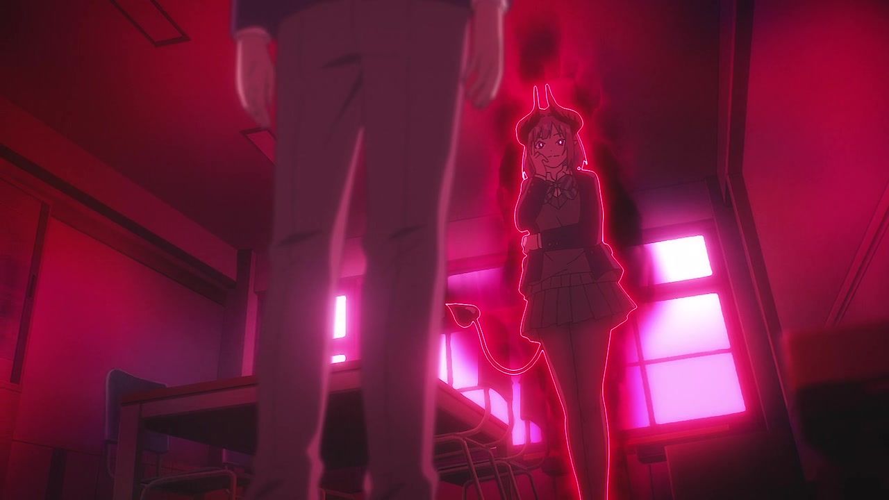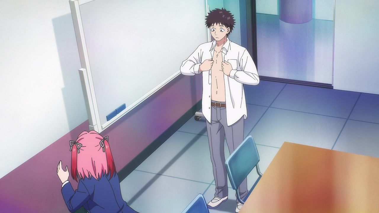 The whole schtick of her orgasming, screaming, or orgasm screaming, had run its course about five minutes into the episode, so it was up to the dude to carry the humor, which he wasn't half bad at, surprisingly. There aren't many dudes in anime who are simultaneously horny, respectful, deadpan, and down for literally anything while also managing to pop out of nowhere are scale the sides of buildings. Generally that's the purview of one of the wacky side characters, your Pani Poni Dash Ichijo or Nodamiki. The ride or die types who it doesn't matter what's going on, they're in. But all roads lead to her screaming, so even when the setup is more humorous than the 'punchline,' you're still getting your eardrums pierced and retinas blasted by red hues.