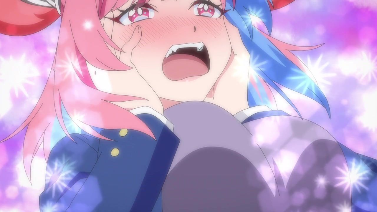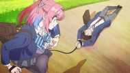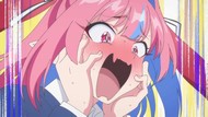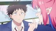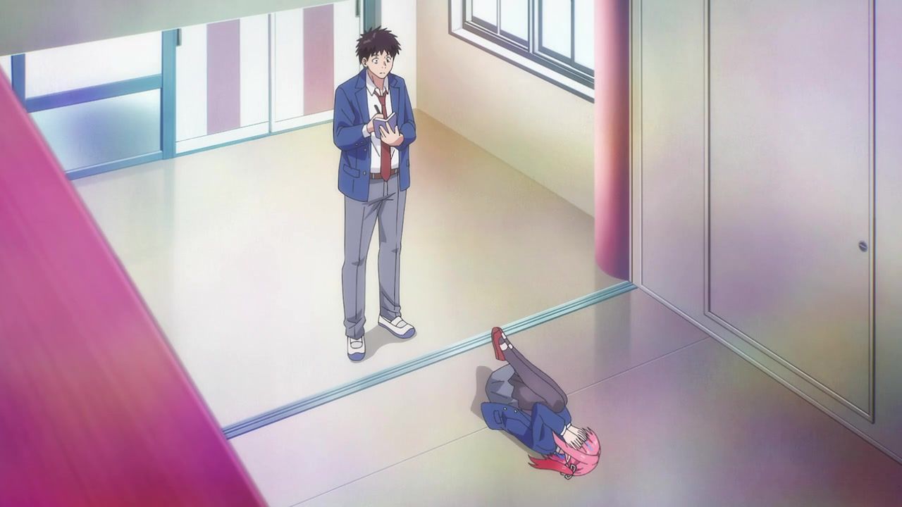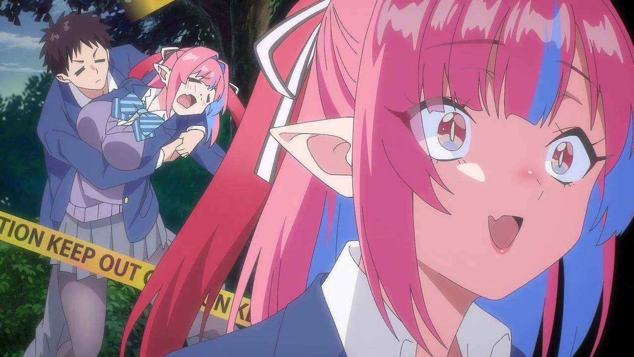 The whole schtick of her orgasming, screaming, or orgasm screaming, had run its course about five minutes into the episode, so it was up to the dude to carry the humor, which he wasn't half bad at, surprisingly. There aren't many dudes in anime who are simultaneously horny, respectful, deadpan, and down for literally anything while also managing to pop out of nowhere are scale the sides of buildings. Generally that's the purview of one of the wacky side characters, your Pani Poni Dash Ichijo or Nodamiki. The ride or die types who it doesn't matter what's going on, they're in. But all roads lead to her screaming, so even when the setup is more humorous than the 'punchline,' you're still getting your eardrums pierced and retinas blasted by red hues.