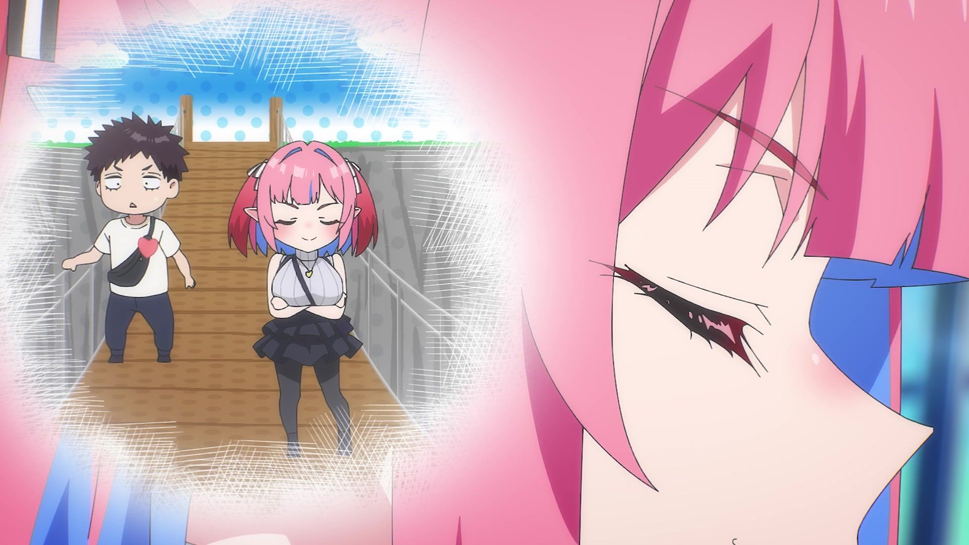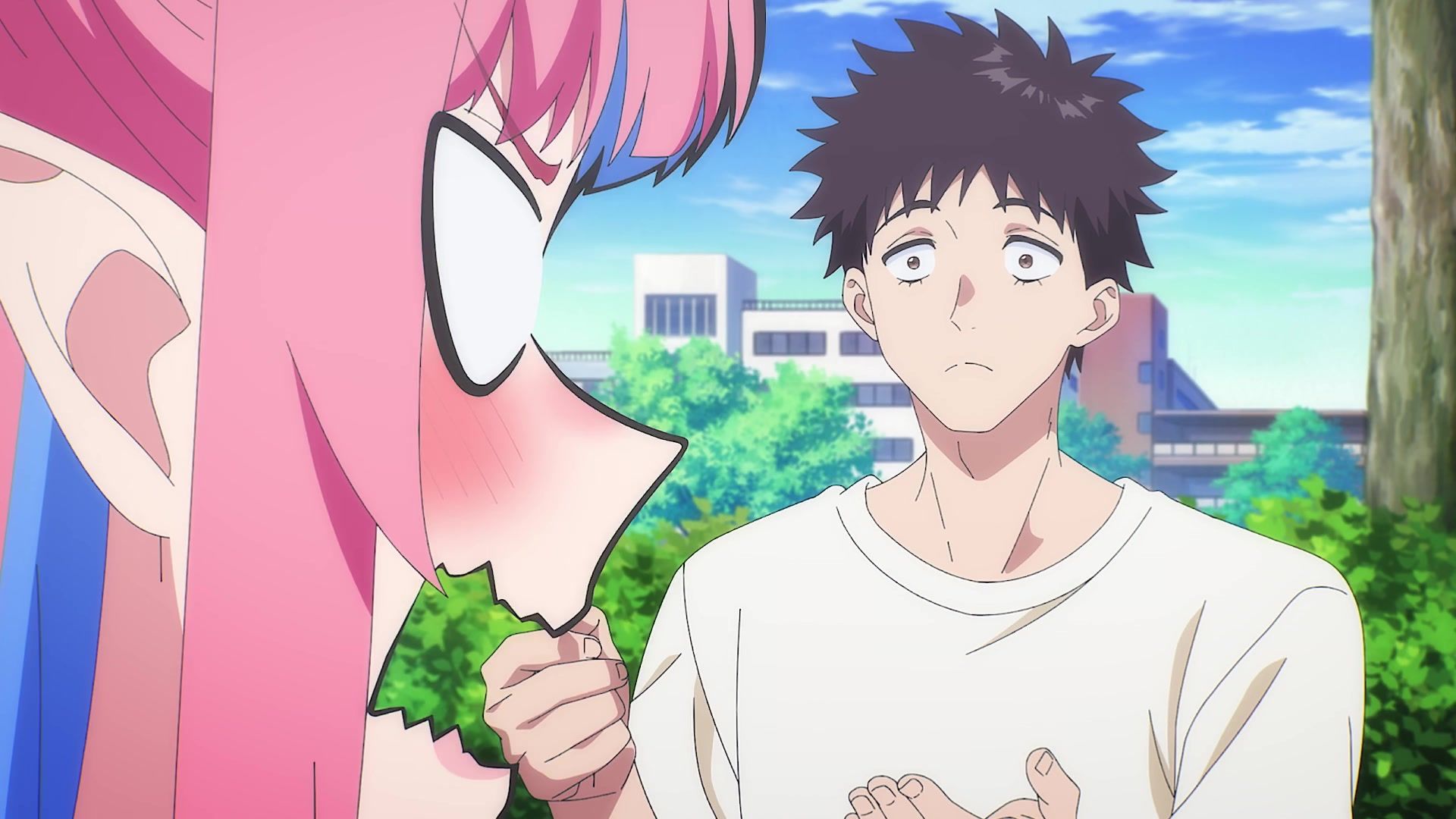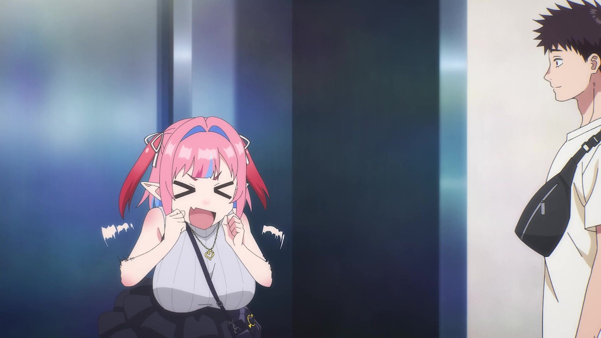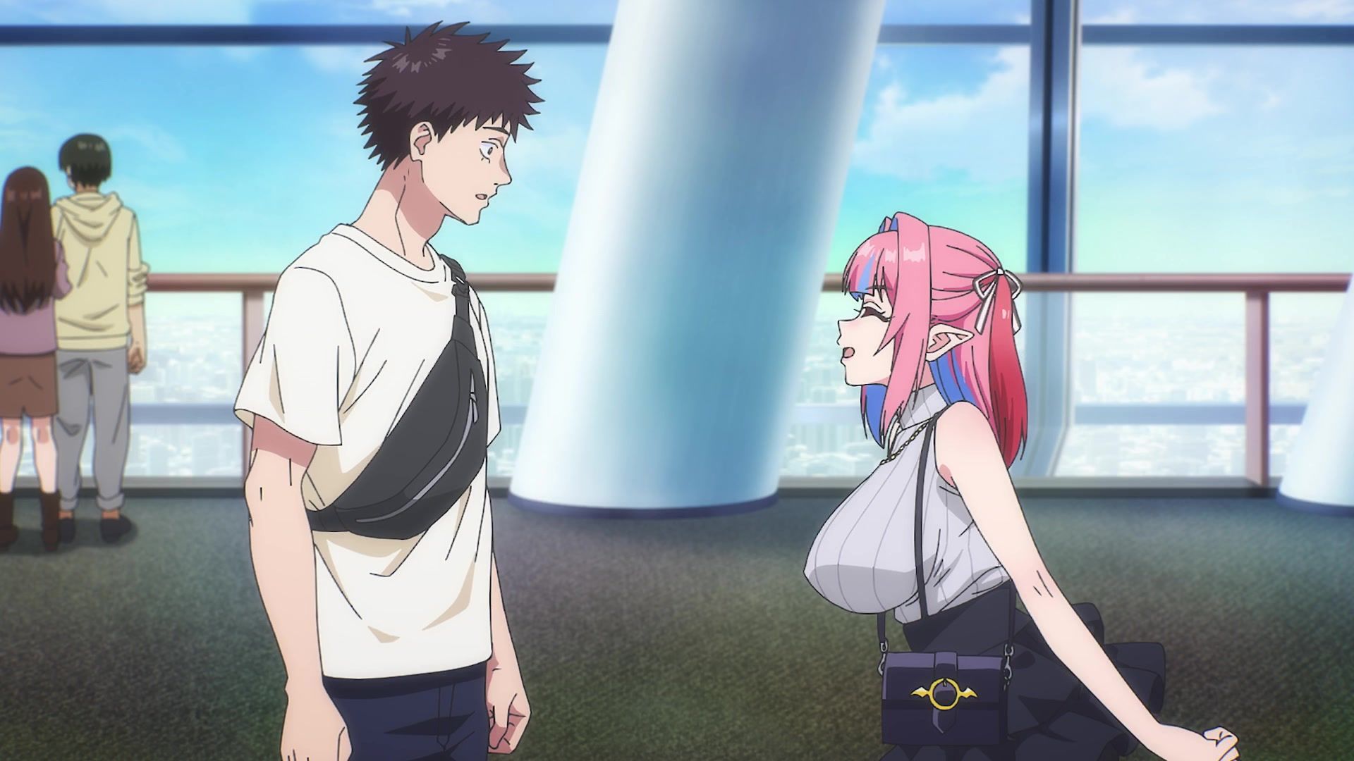 The other twenty minutes though? Screaming. Practically nonstop. It weirdly tries to introduce a new character at the start, and then she vanishes again, having done her one very loud joke for like six straight minutes. Then the date is just more yelling. Mostly about her not wearing a bra, which I admit to not being a bra wearer, so maybe I'm off, but I feel like you'd notice that, especially with the 50 pound watermelons strapped to your chest like she has. It chilled out eventually, but at that point, I was already well past ready for the episode to be over. Which it did by returning to yelling. Saturday anime, you're making things rough.