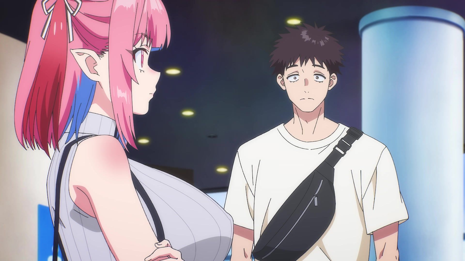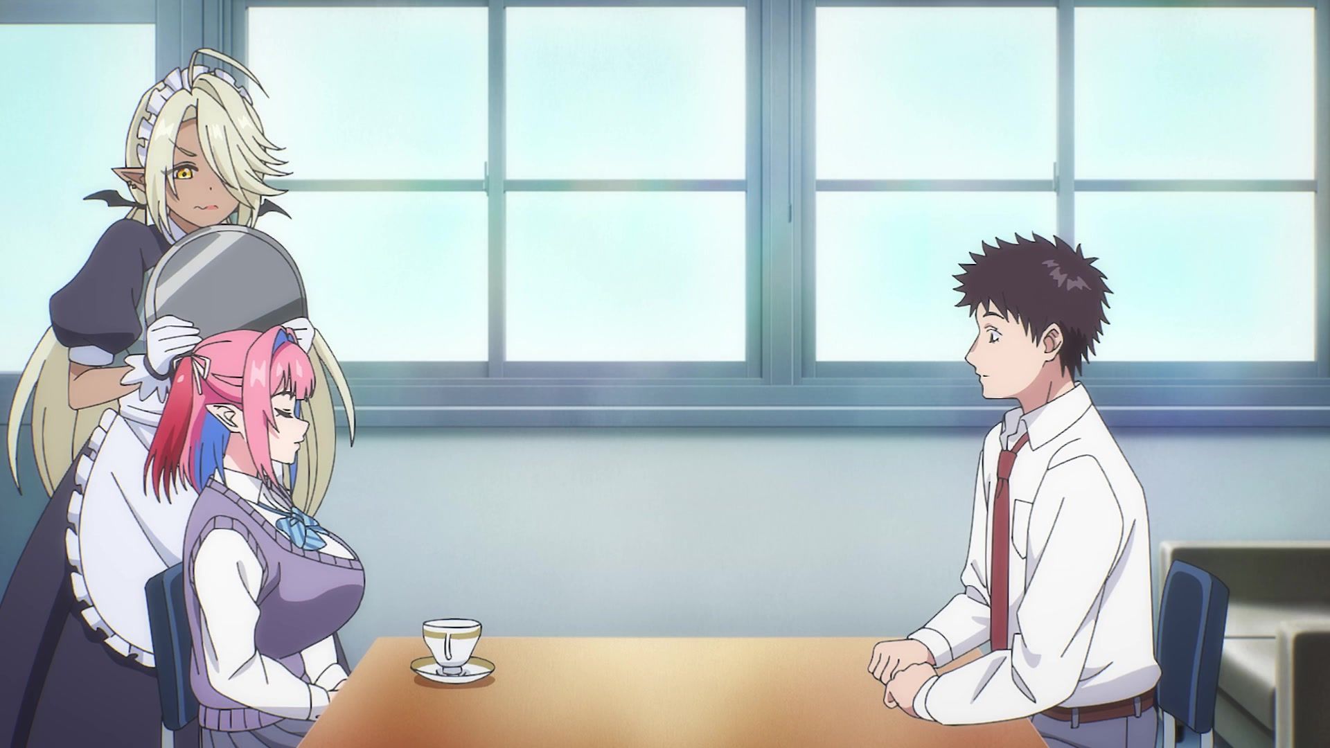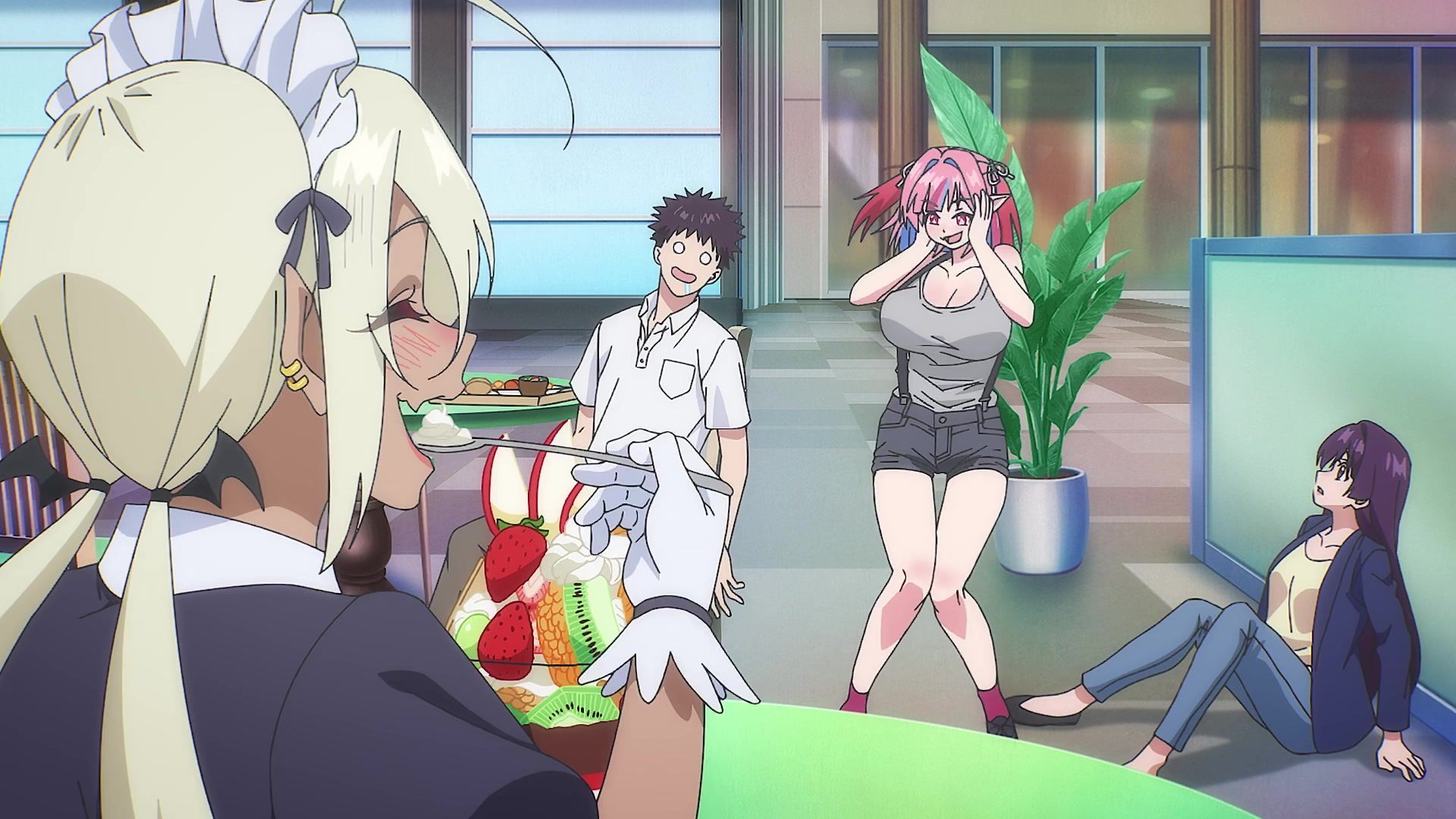 The other twenty minutes though? Screaming. Practically nonstop. It weirdly tries to introduce a new character at the start, and then she vanishes again, having done her one very loud joke for like six straight minutes. Then the date is just more yelling. Mostly about her not wearing a bra, which I admit to not being a bra wearer, so maybe I'm off, but I feel like you'd notice that, especially with the 50 pound watermelons strapped to your chest like she has. It chilled out eventually, but at that point, I was already well past ready for the episode to be over. Which it did by returning to yelling. Saturday anime, you're making things rough.