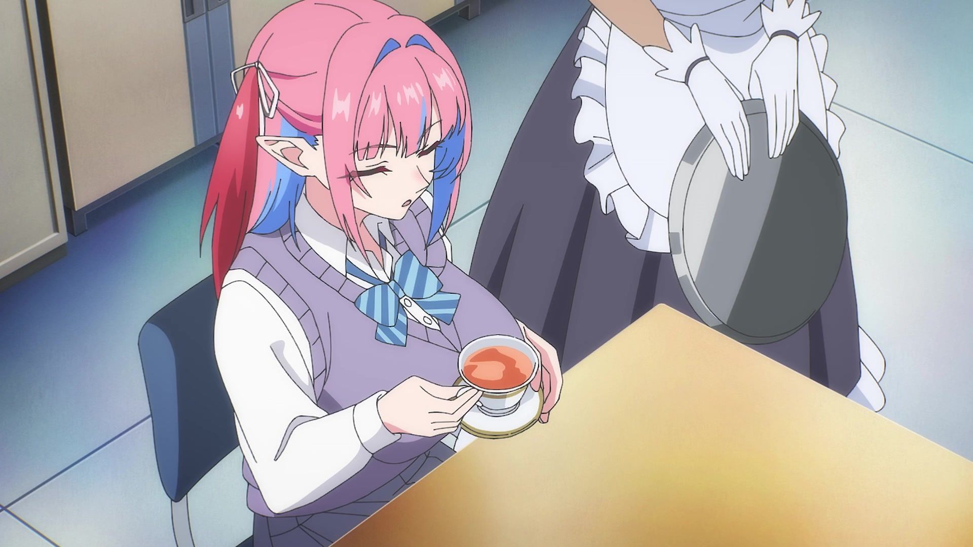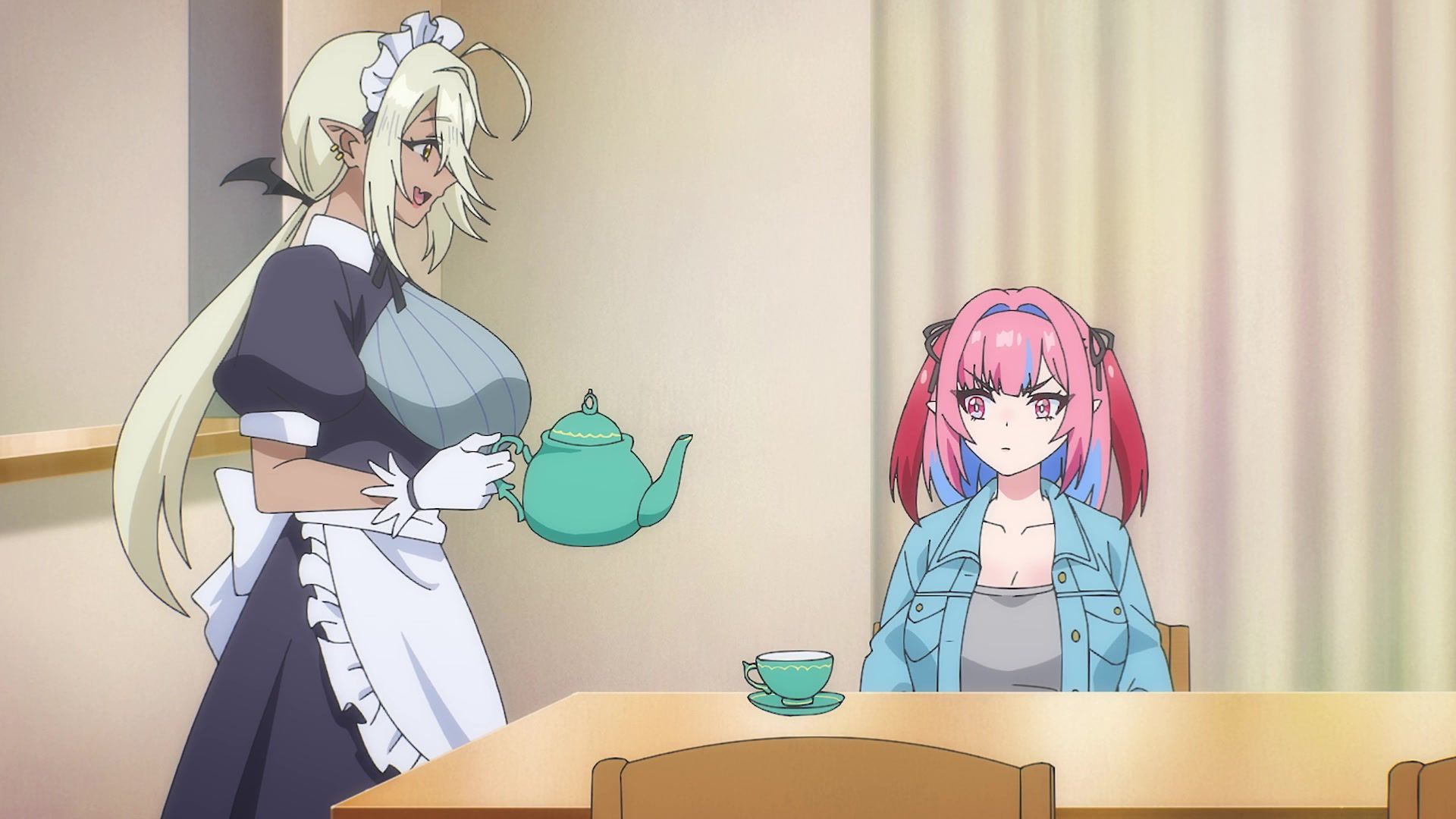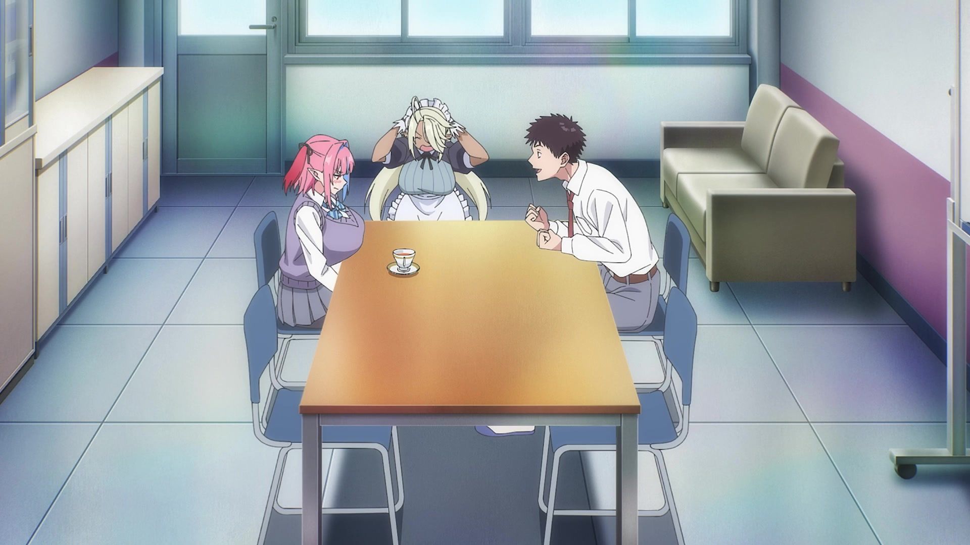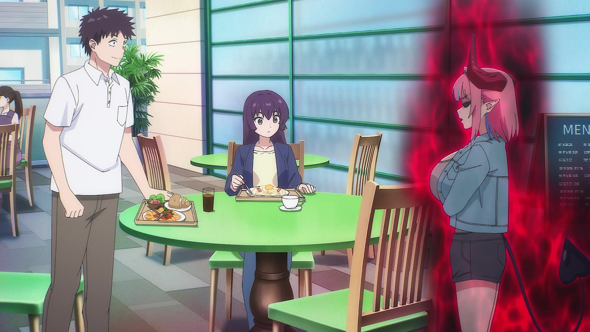 The other twenty minutes though? Screaming. Practically nonstop. It weirdly tries to introduce a new character at the start, and then she vanishes again, having done her one very loud joke for like six straight minutes. Then the date is just more yelling. Mostly about her not wearing a bra, which I admit to not being a bra wearer, so maybe I'm off, but I feel like you'd notice that, especially with the 50 pound watermelons strapped to your chest like she has. It chilled out eventually, but at that point, I was already well past ready for the episode to be over. Which it did by returning to yelling. Saturday anime, you're making things rough.