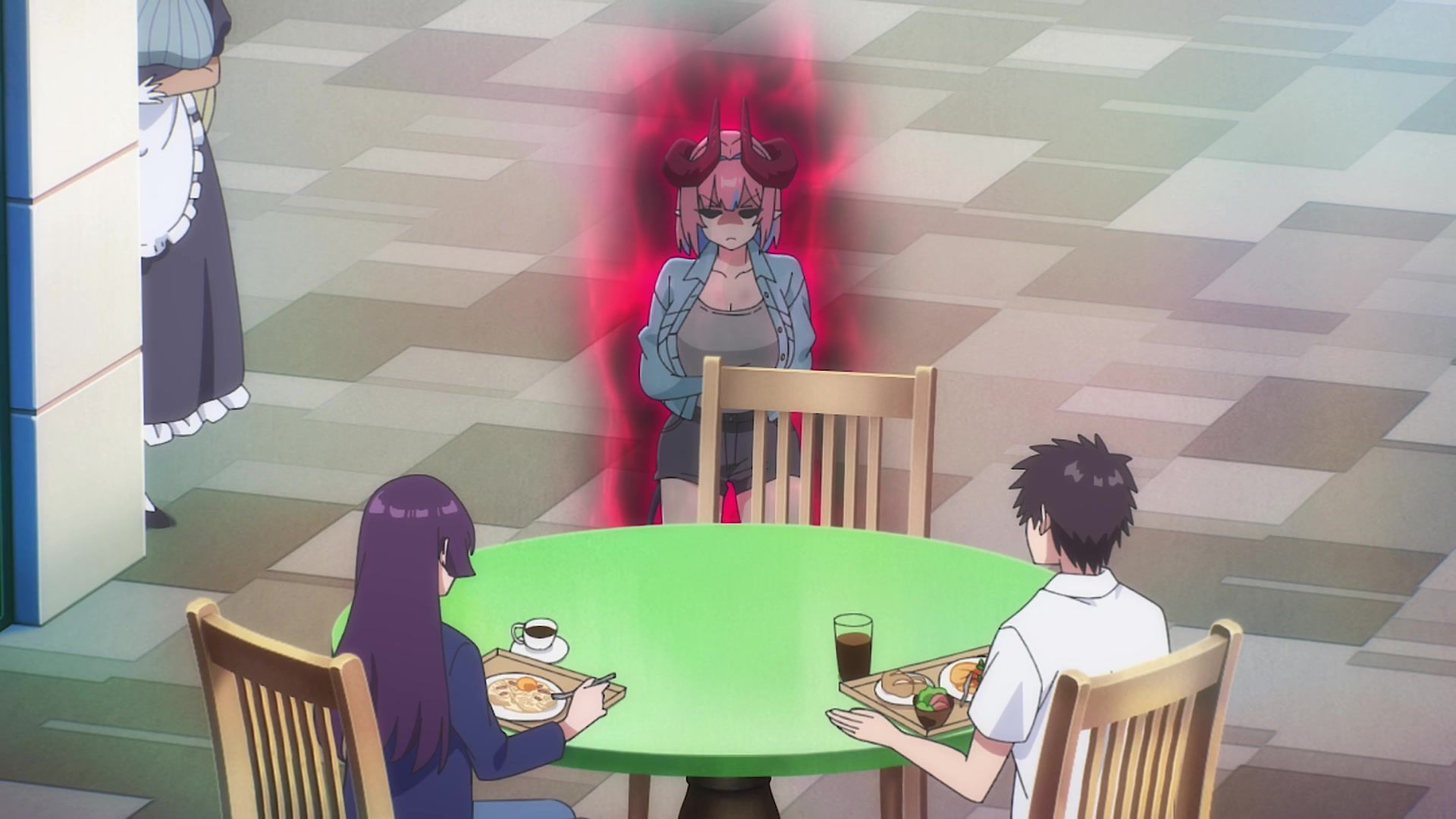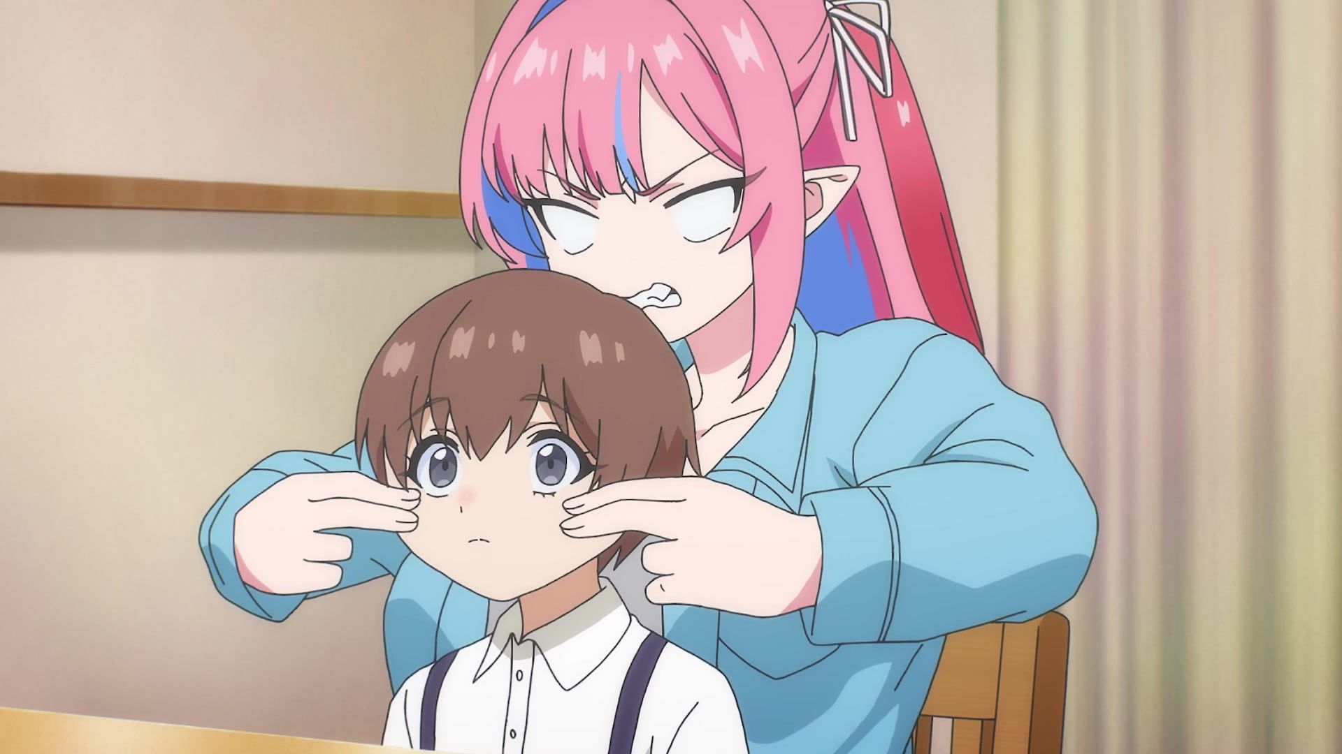 There's a brief segment in this episode where it was actually not just funny, but cute. The whole bit at the house where the maid's tweaking her, and she's frustrated and literally chewing on her mind-controlled child before physically throwing him away like a sack of potatoes. See, guys? You can do jokes as part of the conversation that show character traits without screaming or speedlines. It's possible. Let's try more of that.