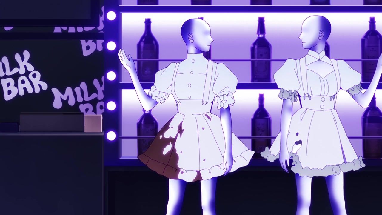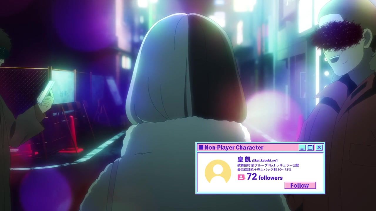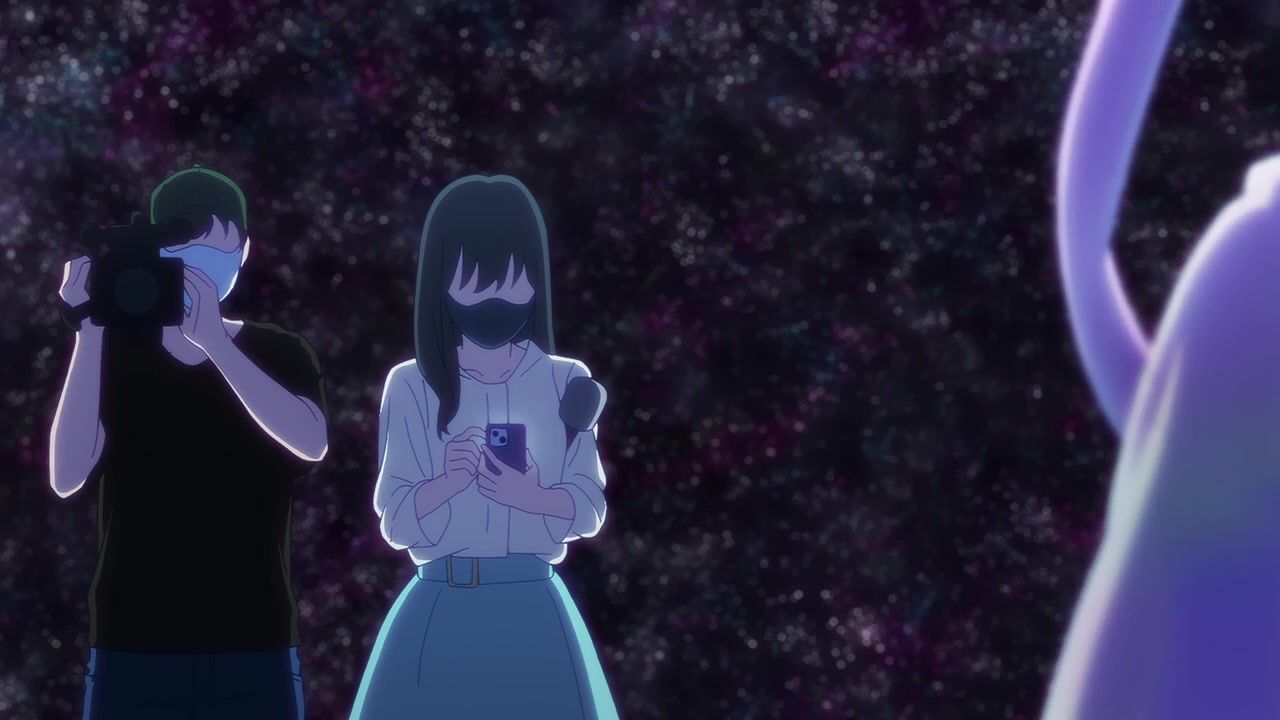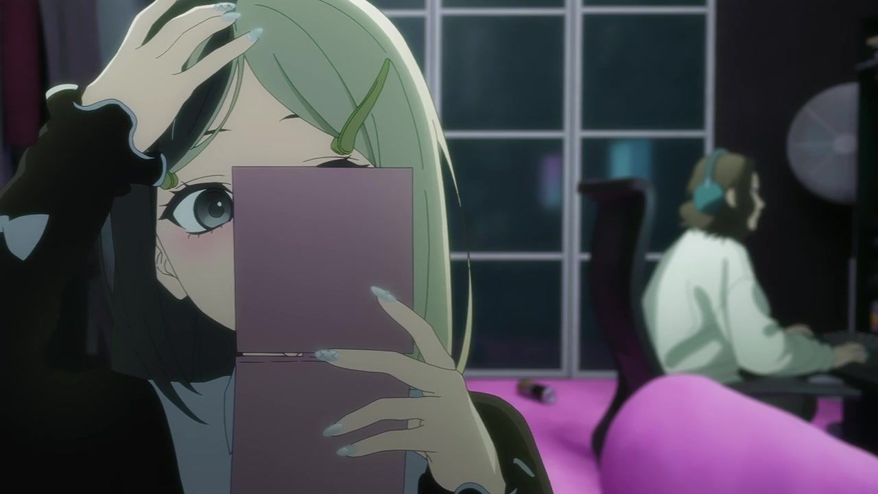 What I feel it's mainly lacking is a centralizing narrative. The episode feels like a series of disconnected vignettes. Mainly about streamer girls in desperate need of therapy, but the long final interview thing with the main one feels like it should have been the thing that ties it all together, but it was also probably the weakest, especially in the visuals. Then it cuts away to the council of magical girls or something, and I feel like all the atmosphere and discomfort that it was building not just didn't pay off, but suddenly shifted into some other show entirely.